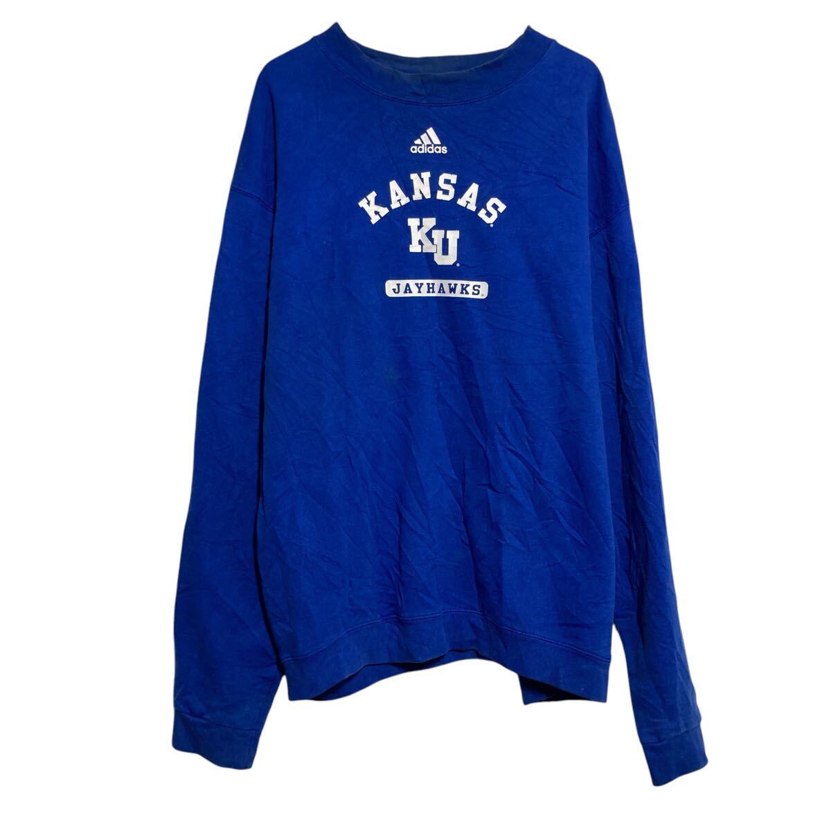 adidas プリントスウェット トレーナー アディダス L ブルー プルオーバー 裏起毛 古着卸 アメリカ仕入 a611-7947