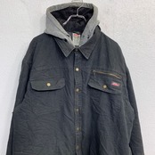 Dickies ワークジャケット 2XL ジップアップ スナップボタン ブラック フード ビッグサイズ ブラック 古着卸 アメリカ仕入 t2411-4018