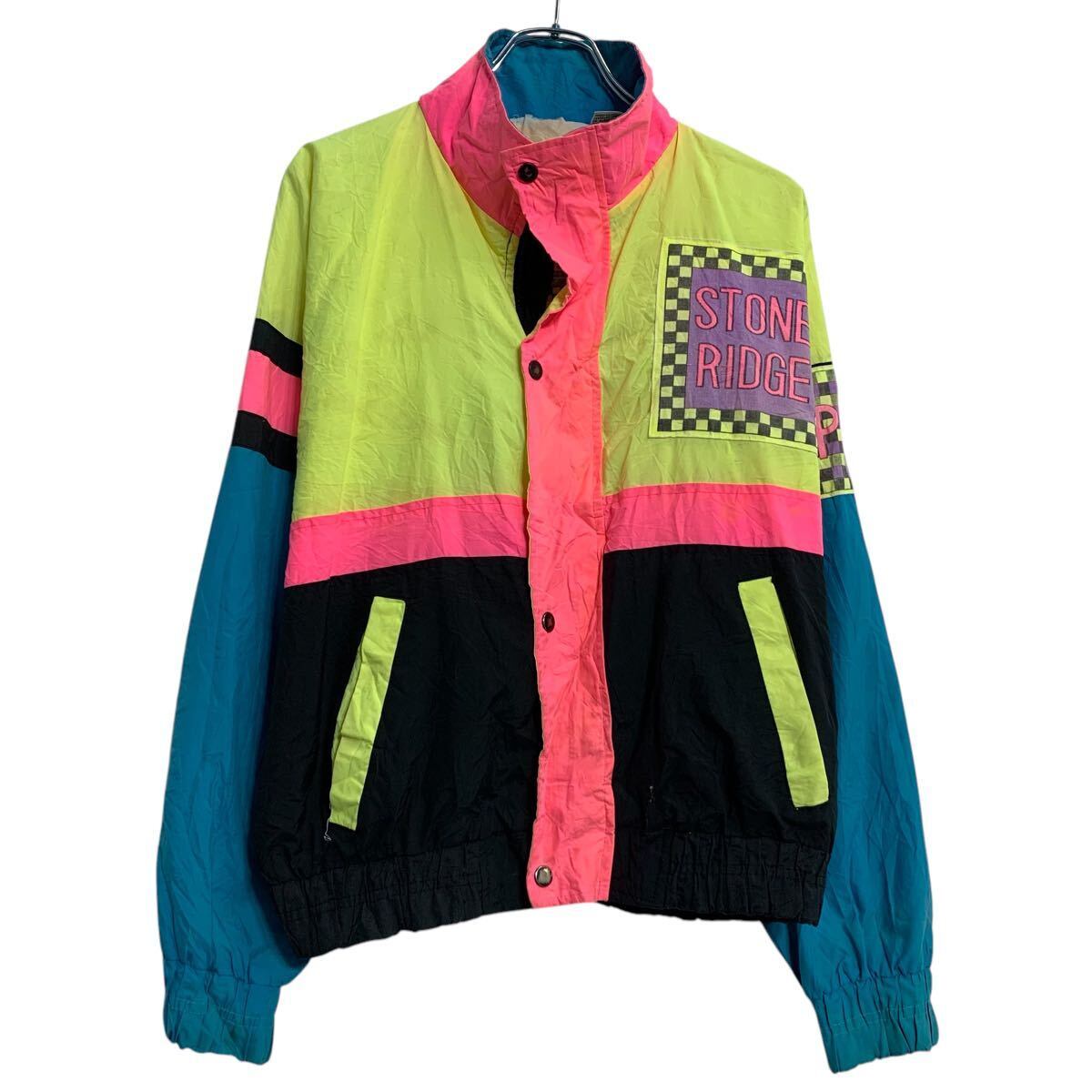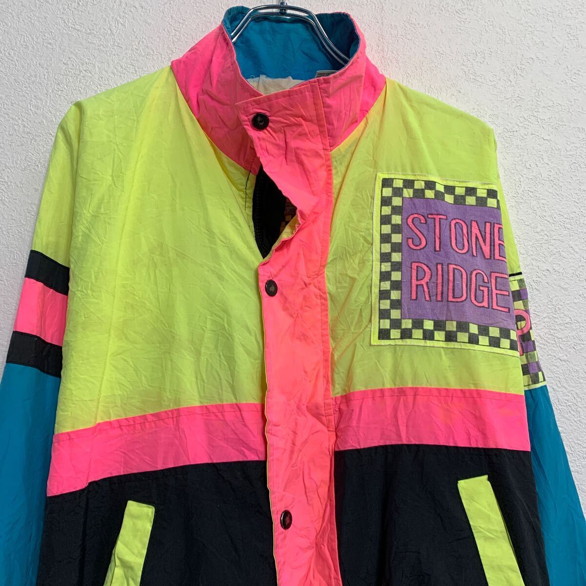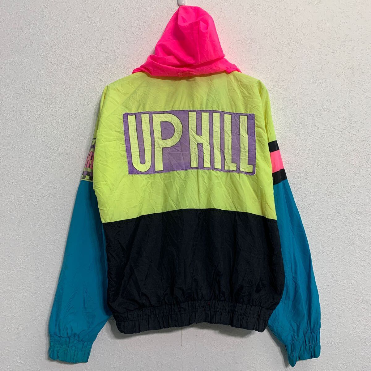 ナイロンジャケット L 程 イエロー ピンク ブルー マルチカラー スナップボタン フード付き アウター 薄手 古着卸 アメリカ仕入 a611-8135