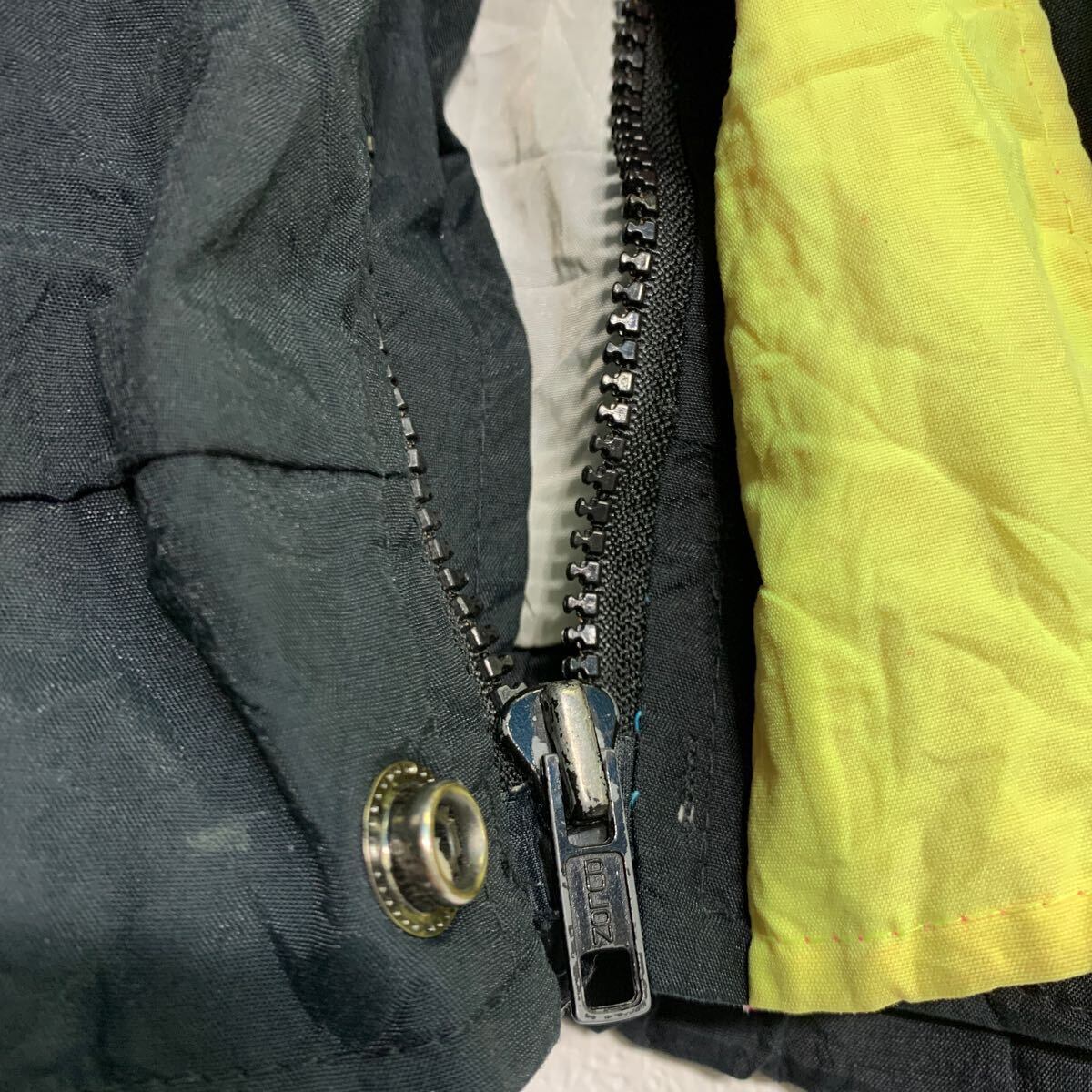 状態確認 C ランク品 前身頃、両袖、後身頃に汚れ、フロントジップに破損が有ります。
