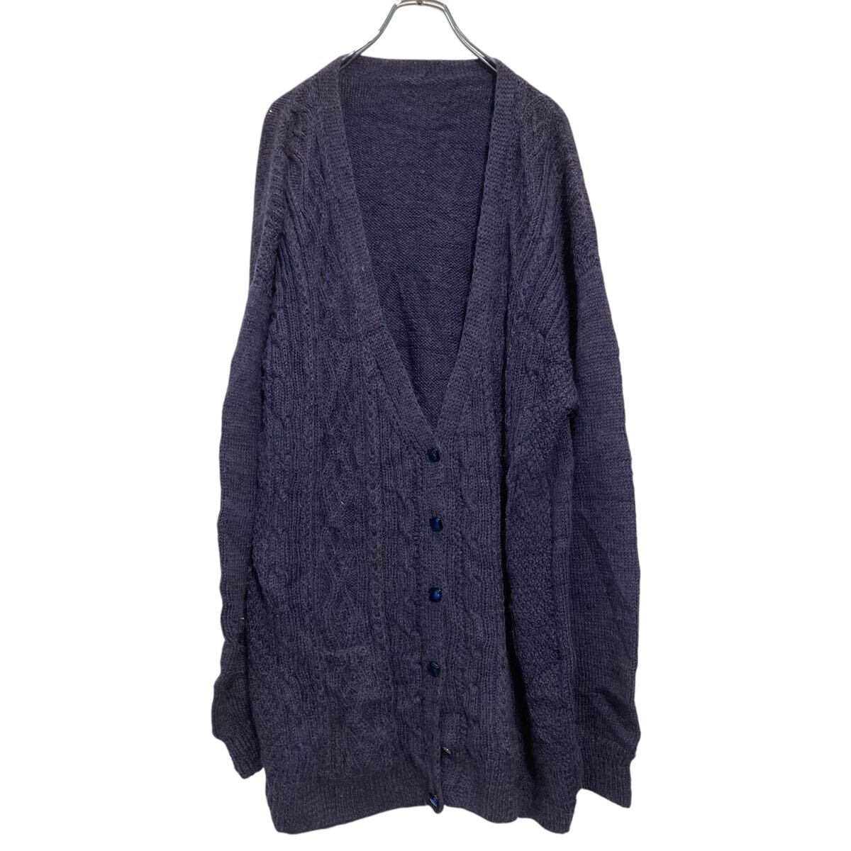 ニット セーター カーディガン レディース 3XL〜 パープル 柄編み ケーブル ビッグサイズ 古着卸 アメリカ仕入 a611-8256