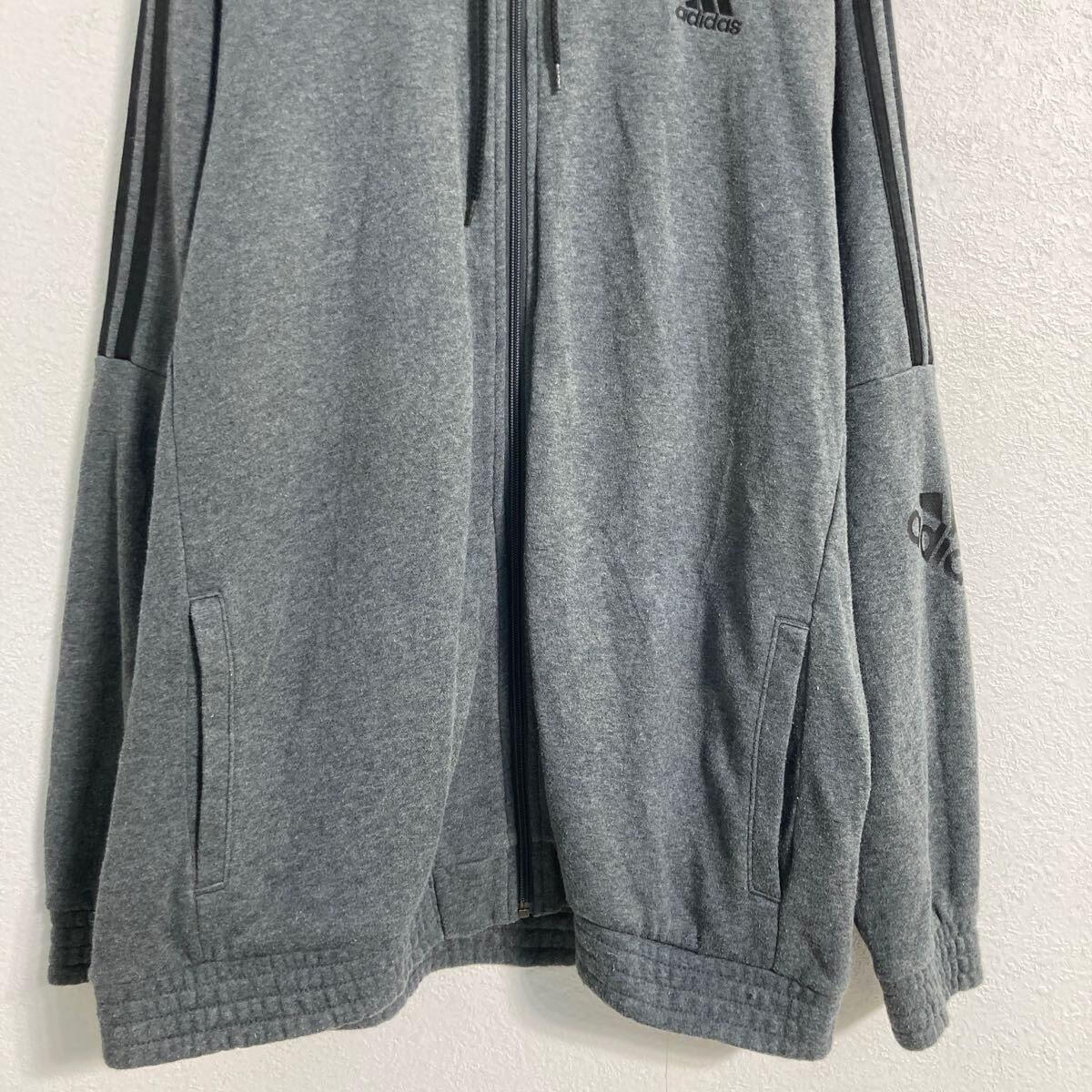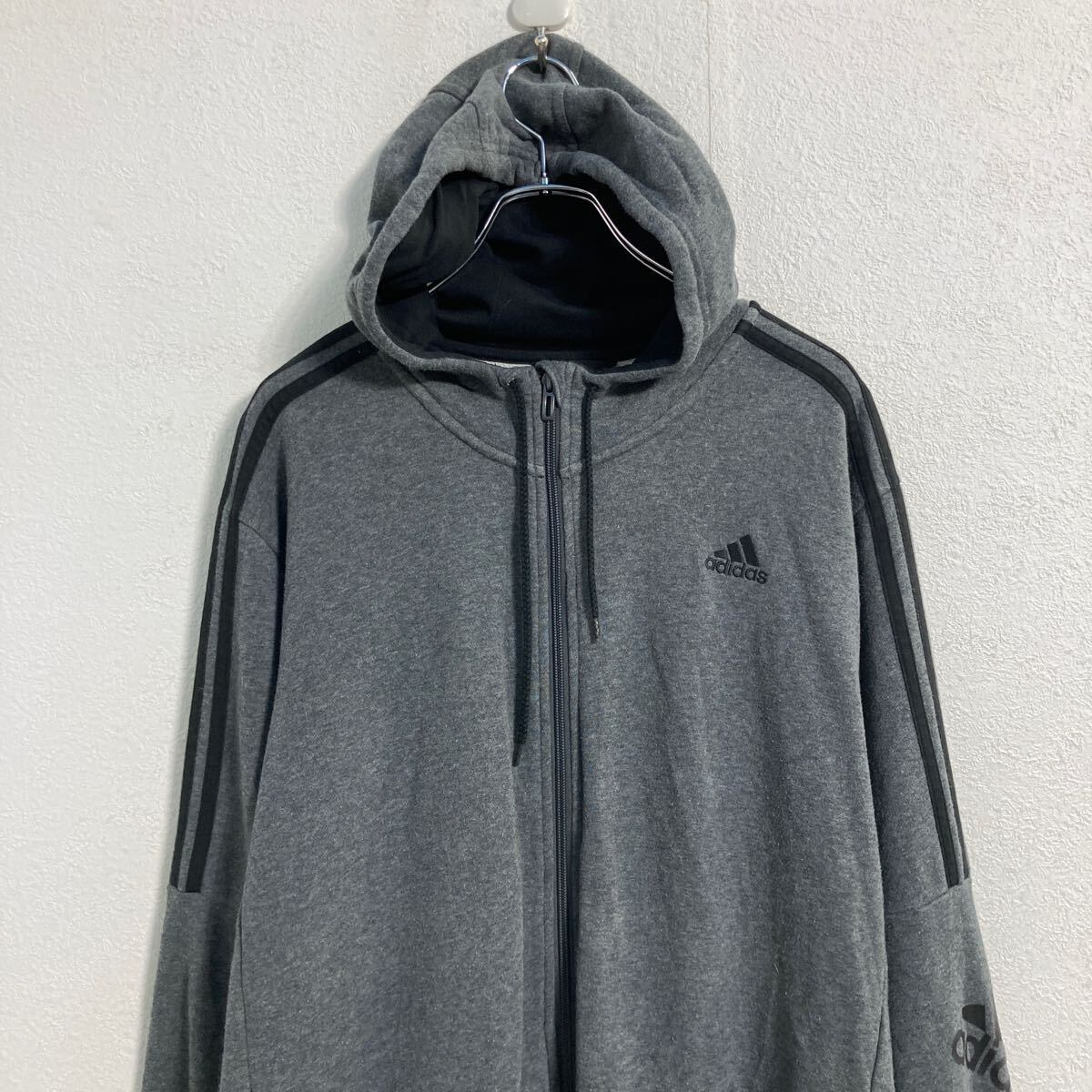 adidas フリース パーカー XL ダークグレー アディダス ロゴ スポーツ ジップアップ ビッグサイズ 裏起毛 古着卸 アメリカ仕入 a611-8349