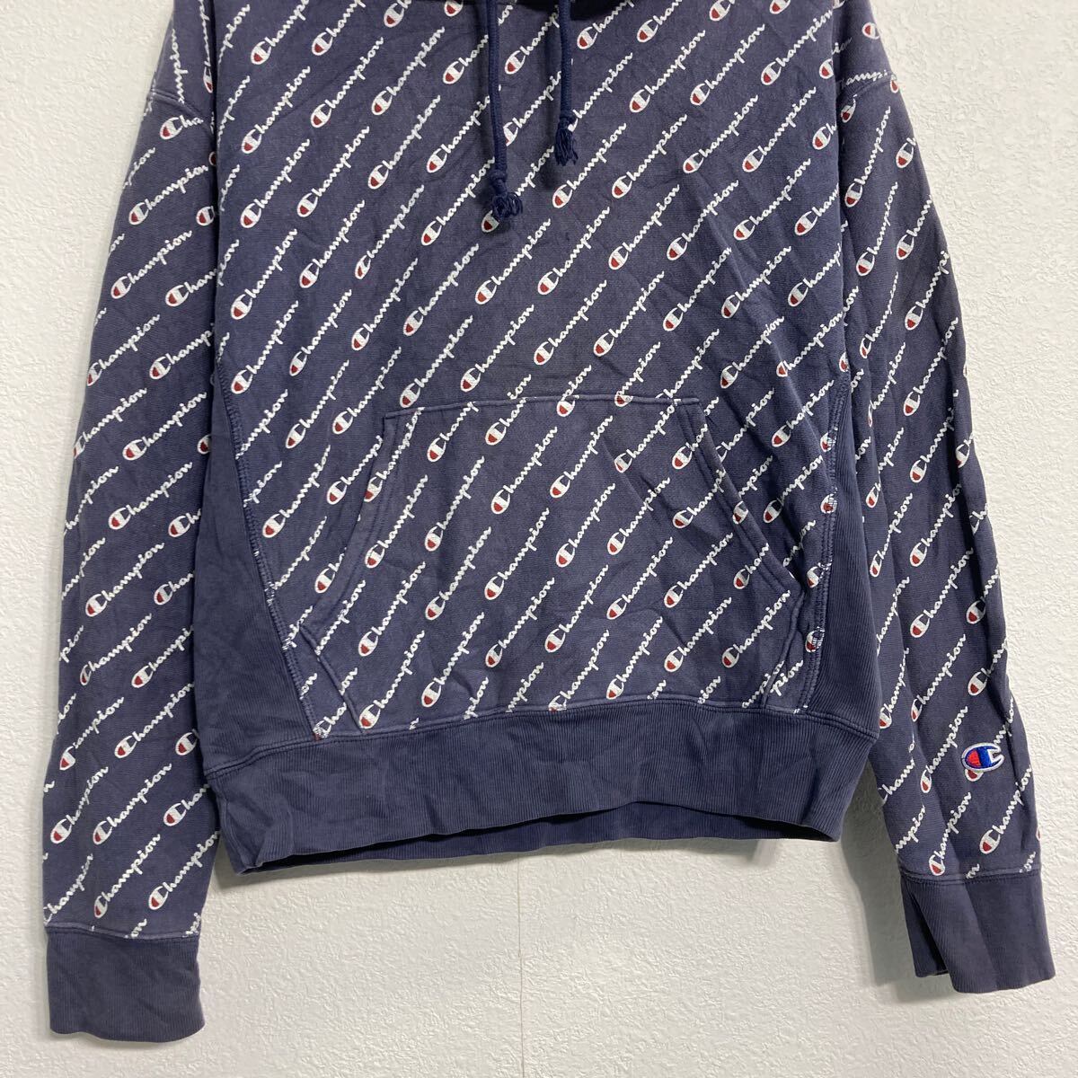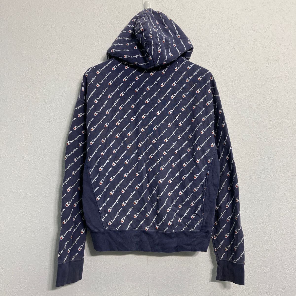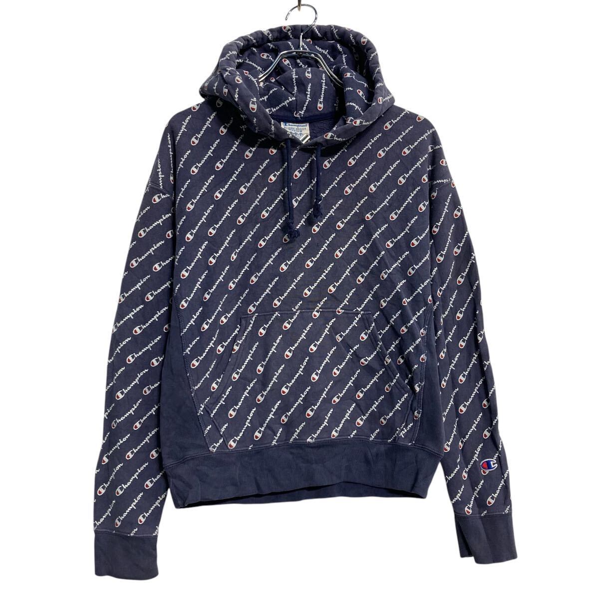 champion ロゴスウェット パーカー チャンピオン M ネイビー 総柄 リバースウィーブ 古着卸 アメリカ仕入 a611-8357