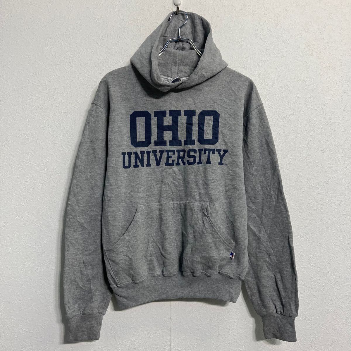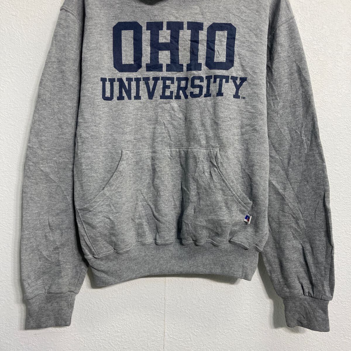 Russell athletic プリントスウェット パーカー ラッセルアスレチック S グレー オハイオ カレッジ OHIO 古着卸 アメリカ仕入 a611-8367