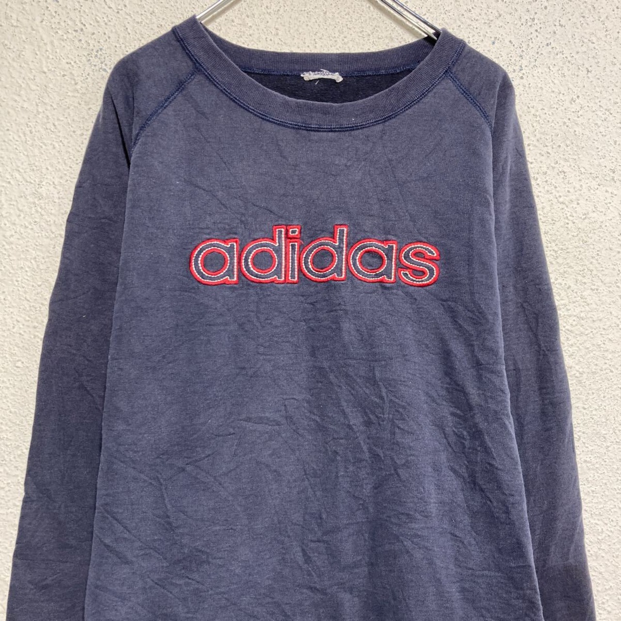 adidas プリントスウェット トレーナー アディダス XL~ ネイビー プルオーバー 刺繍 古着卸 アメリカ仕入 a611-8415