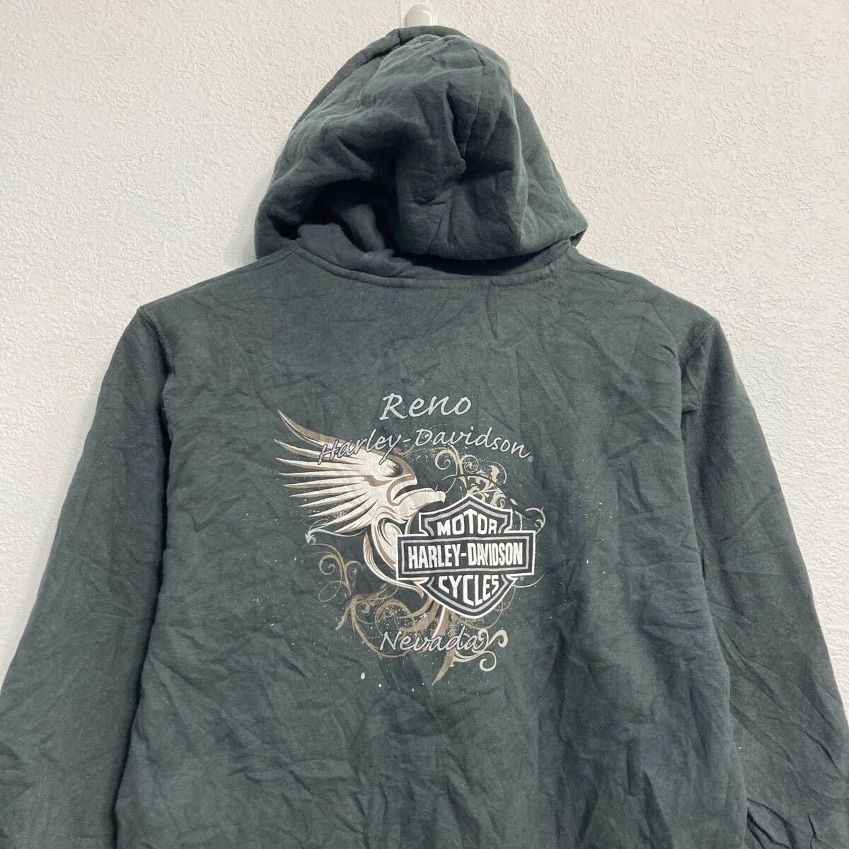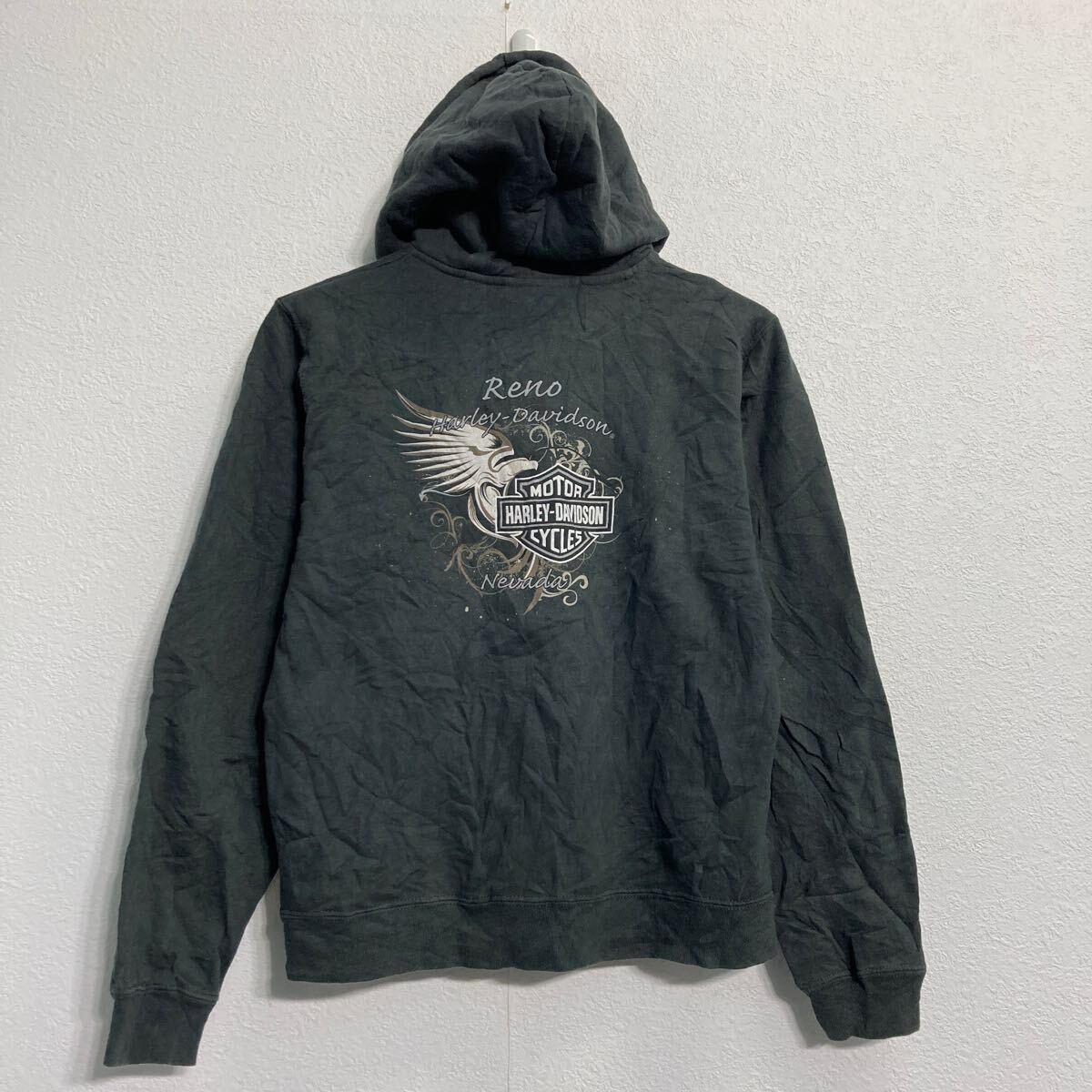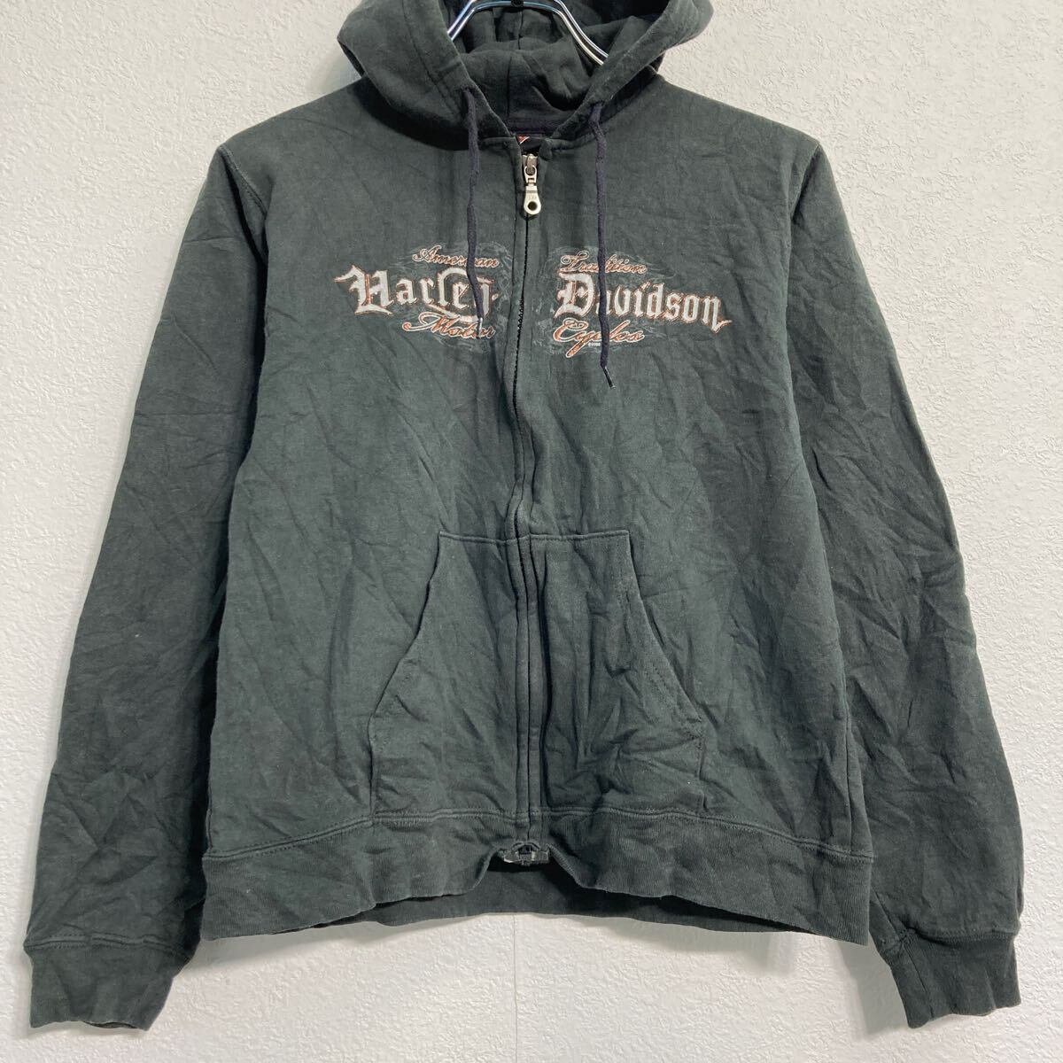 HARLEY-DAVIDSON プリントスウェット パーカー キッズ M バッグプリント フルジップ ハーレー 古着卸 アメリカ仕入 a611-8351