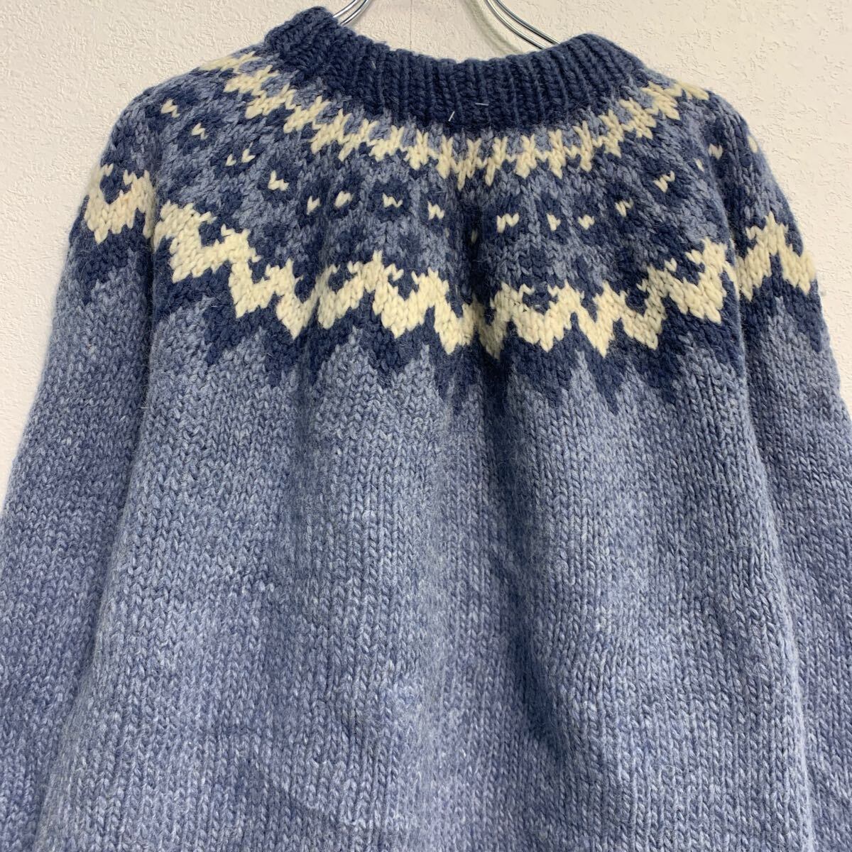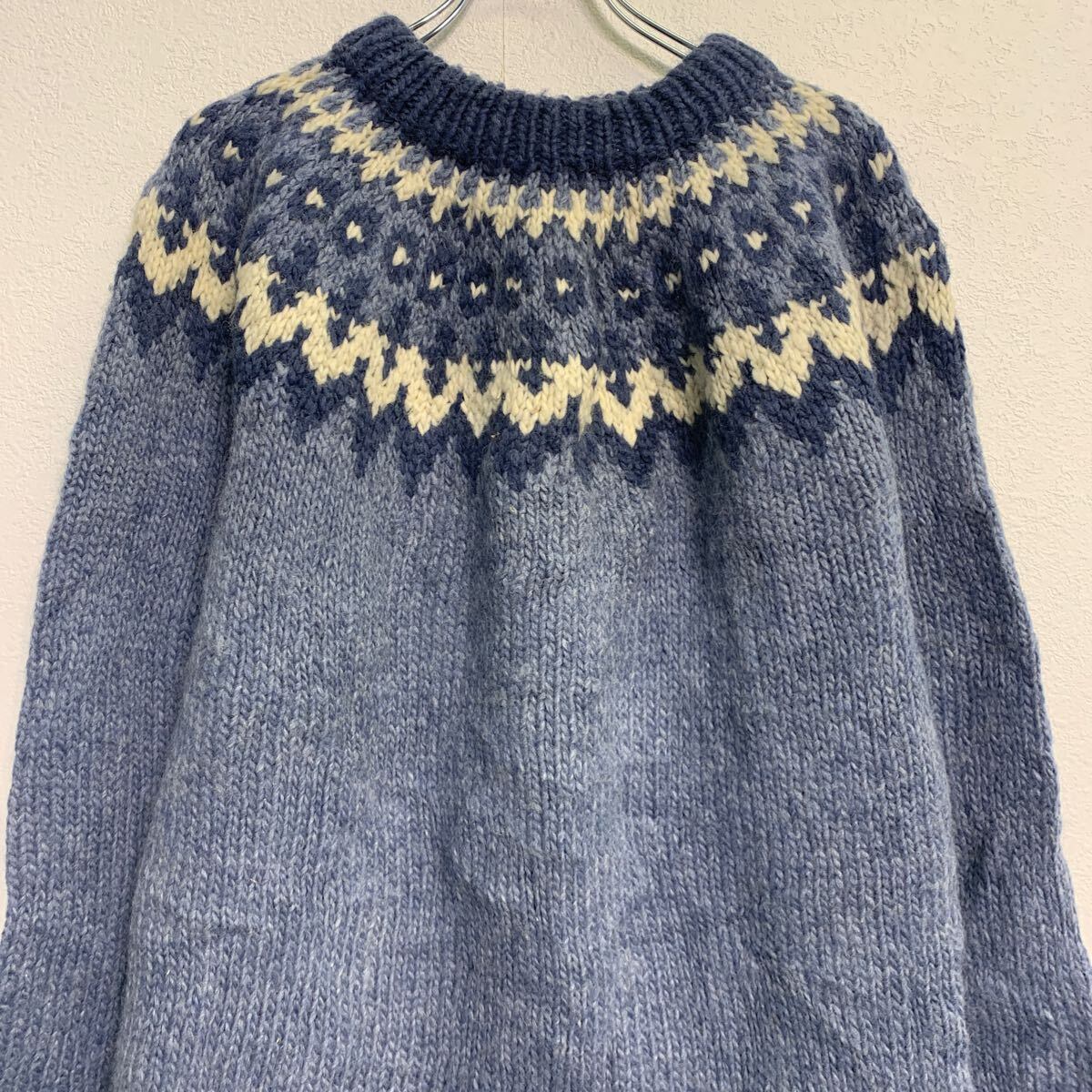 ニット セーター L 程 ブルー ホワイト プルオーバー フェアアイル 総柄 秋冬 古着卸 アメリカ仕入 a611-8448