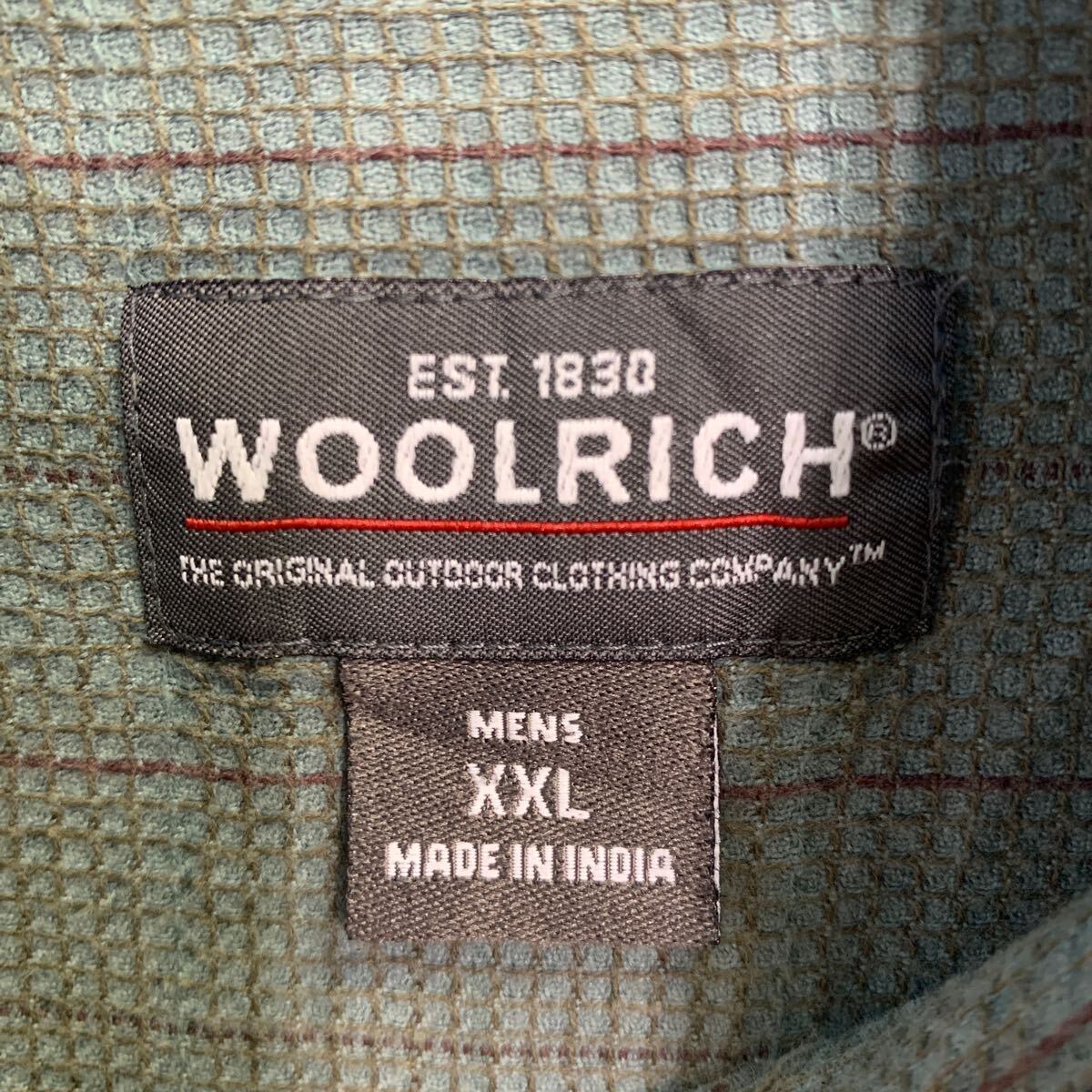 WOOLRICH 長袖 ストライプシャツ XXL グリーン ウールリッチ ボタンダウン ビッグサイズ 胸ポケット 古着卸 アメリカ仕入 a611-8506
