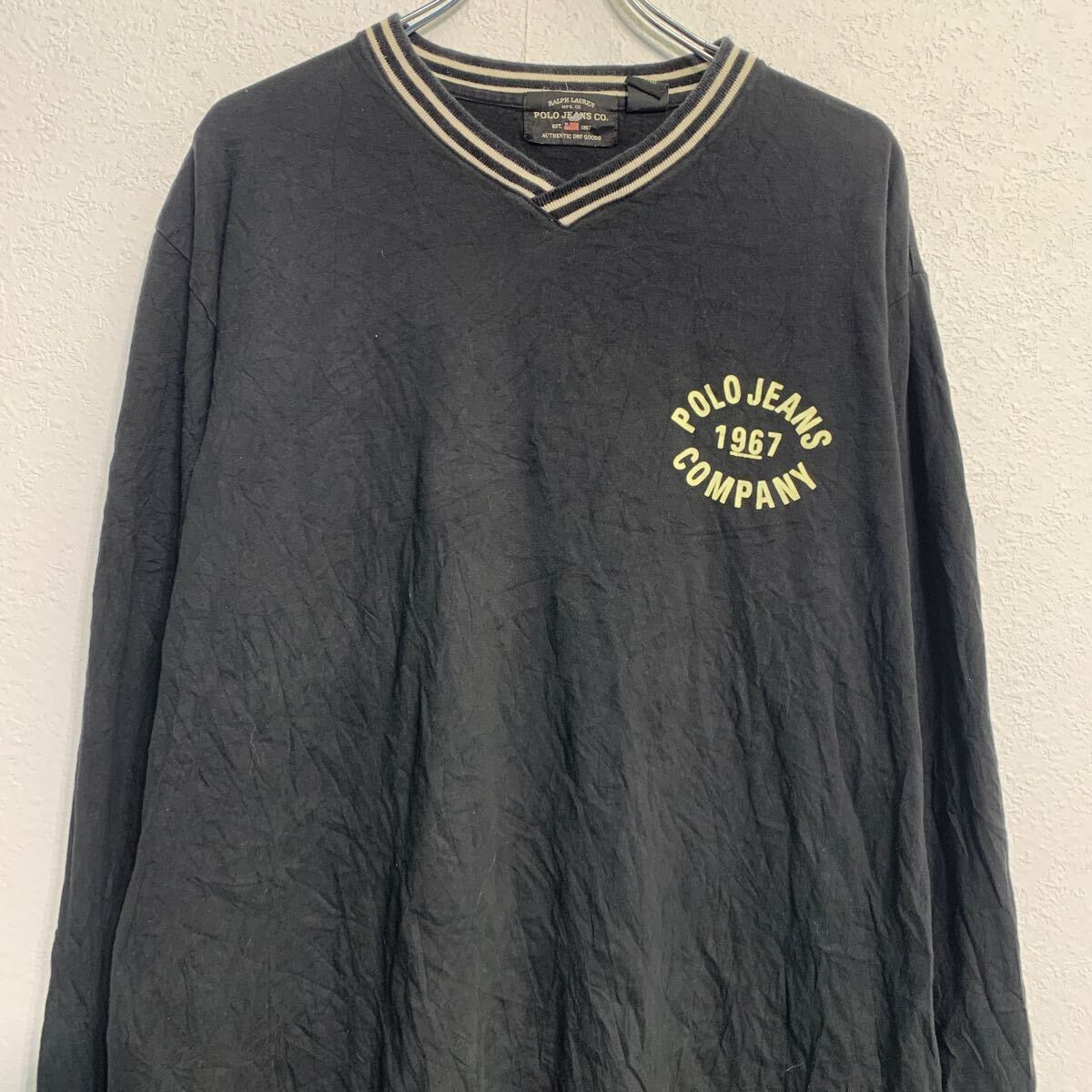 POLO JEANS CO. ロンT ロングTシャツ L ブラック ポロジーンズ プルオーバー Vネック ワンポイント ロゴ 古着卸 アメリカ仕入 a611-8570