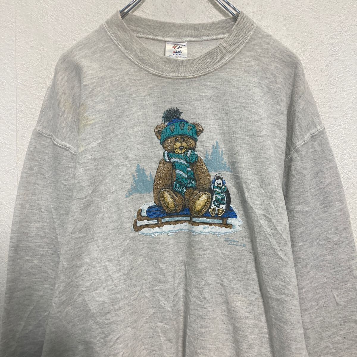 JERZEES プリントスウェット トレーナー レディース M グレー ジャージーズ プルオーバー 裏起毛 くま 古着卸 アメリカ仕入 a611-8643