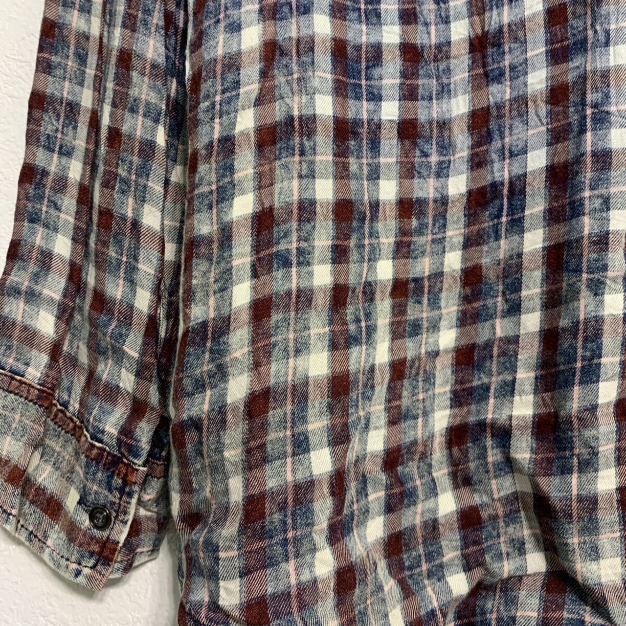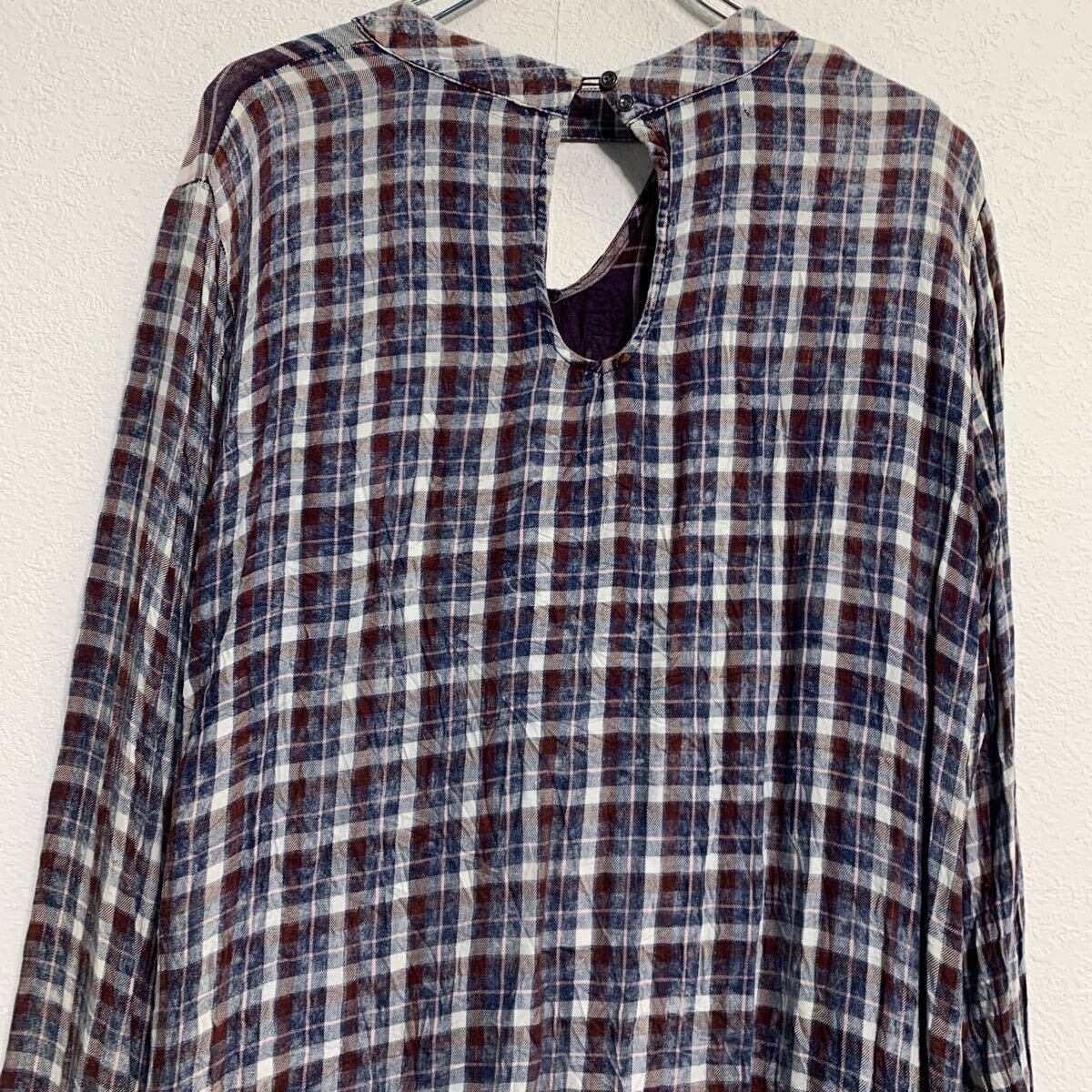 長袖 チェックシャツ レディース XL レッド ホワイト ブルー プルオーバー ブラウス 切替 古着卸 アメリカ仕入 a611-8671