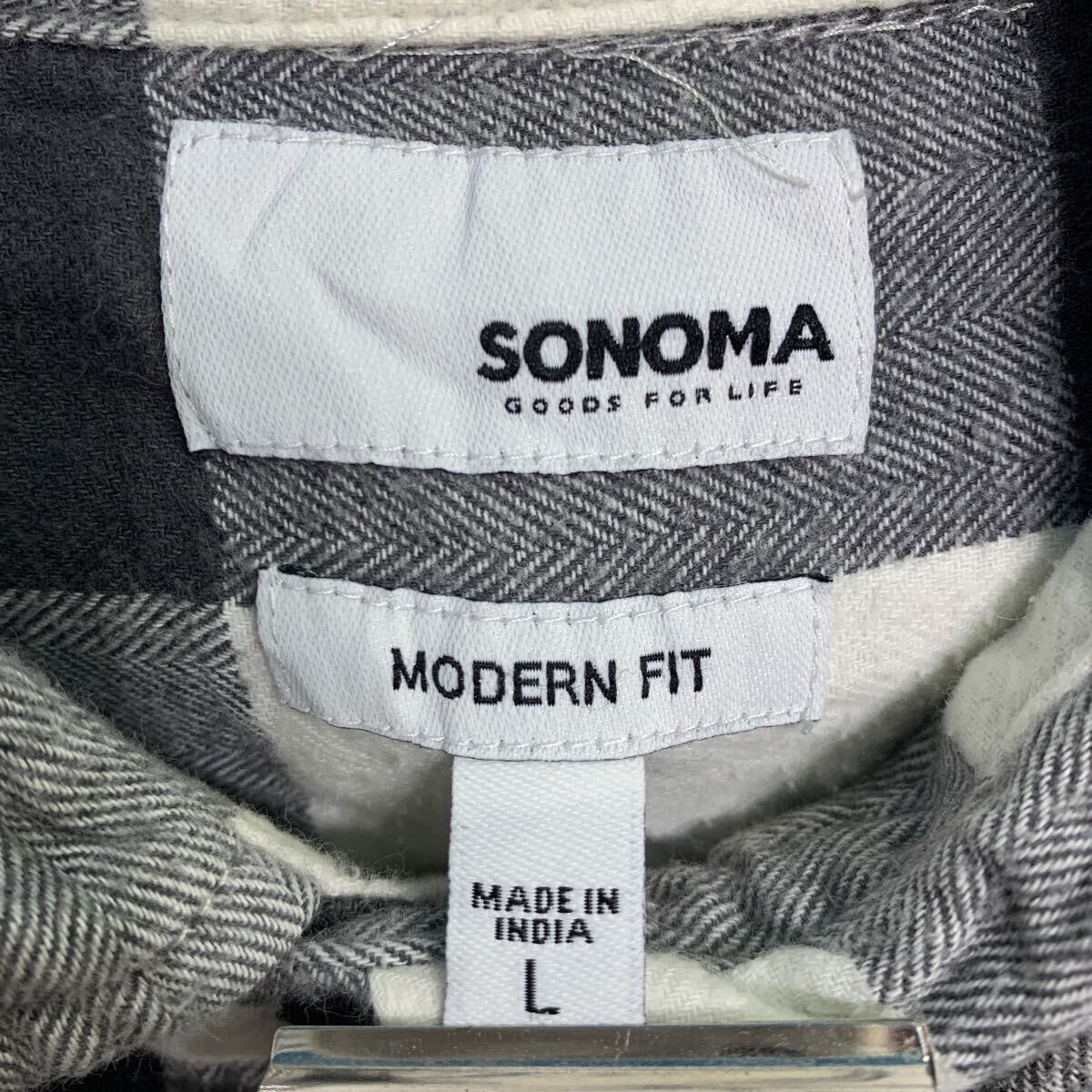 SONOMA 長袖 チェックシャツ L ダークグレー ホワイト ソノマ ボタン 胸ポケット カジュアルシャツ 古着卸 アメリカ仕入 a611-8672