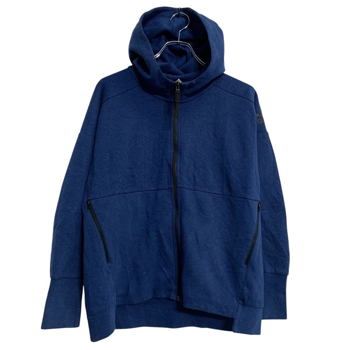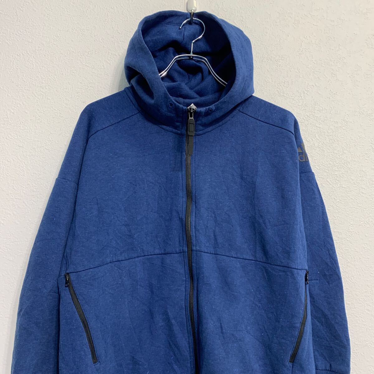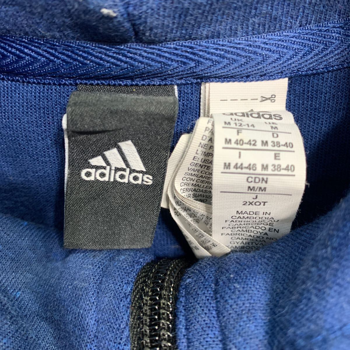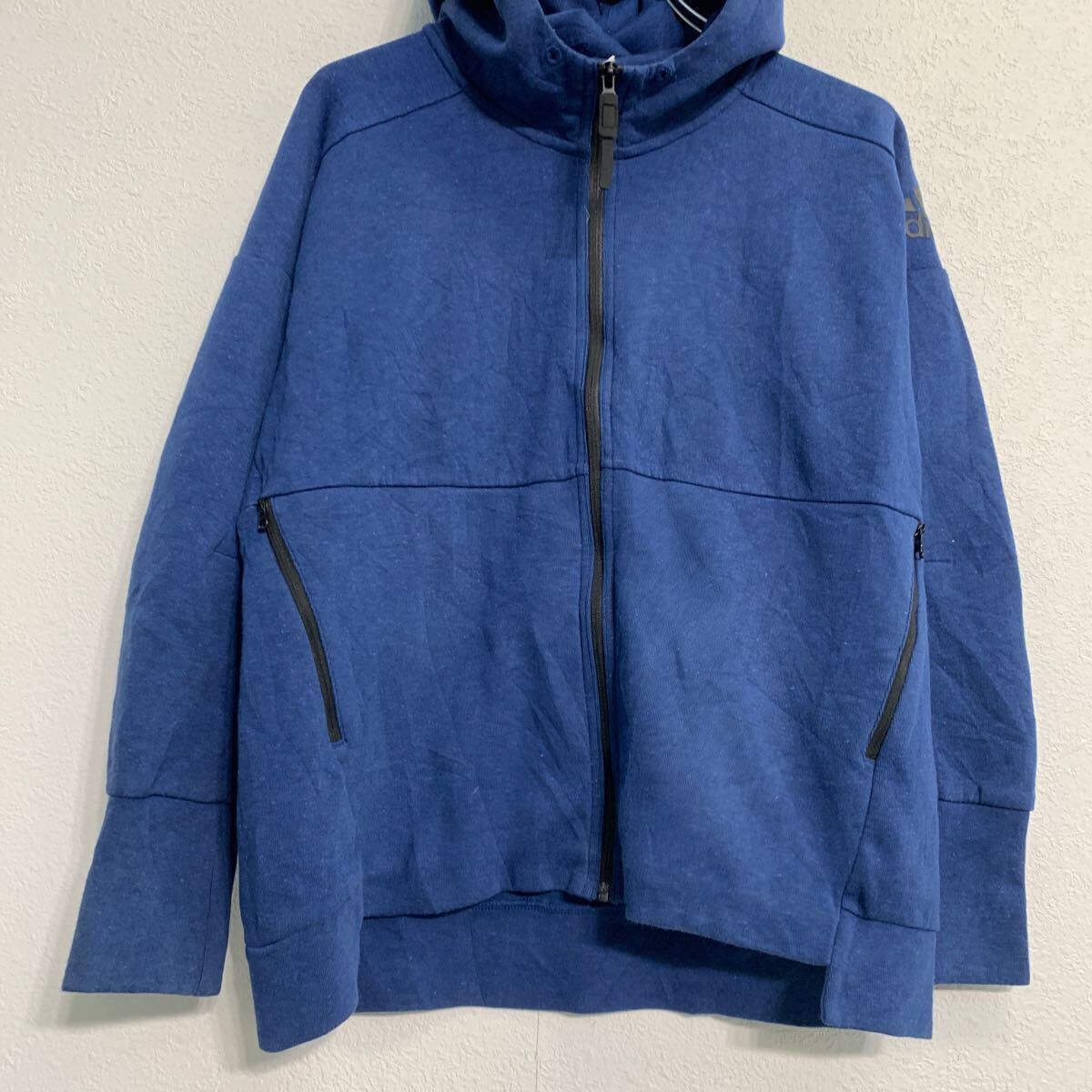adidas ロゴスウェット パーカー M ブルー アディダス ジップアップ ポケット付き スポーティー 古着卸 アメリカ仕入 a611-8688