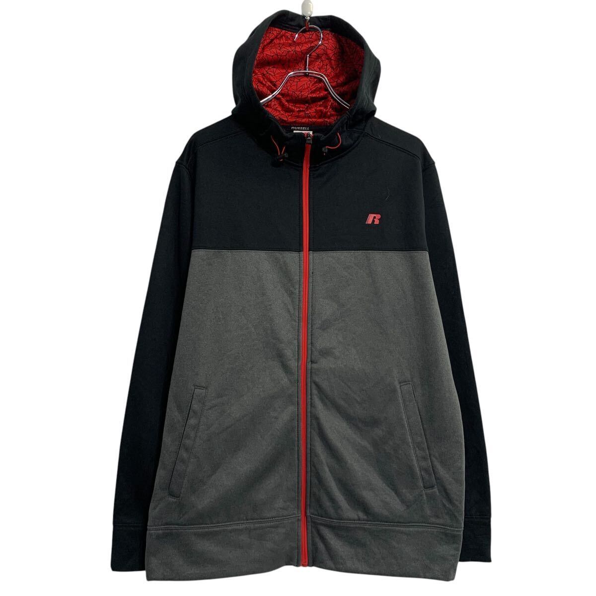 RUSSELL ATHLETIC ロゴスウェット パーカー L ブラック ダークグレー ラッセルアスレチック ジップアップ 古着卸 アメリカ仕入 a611-8710