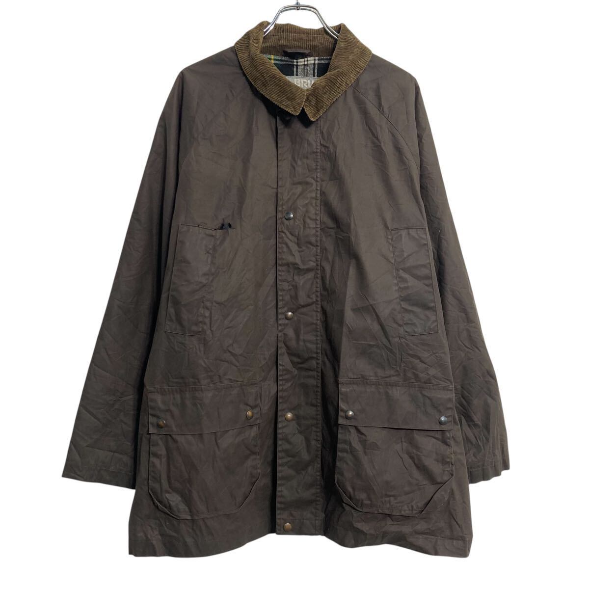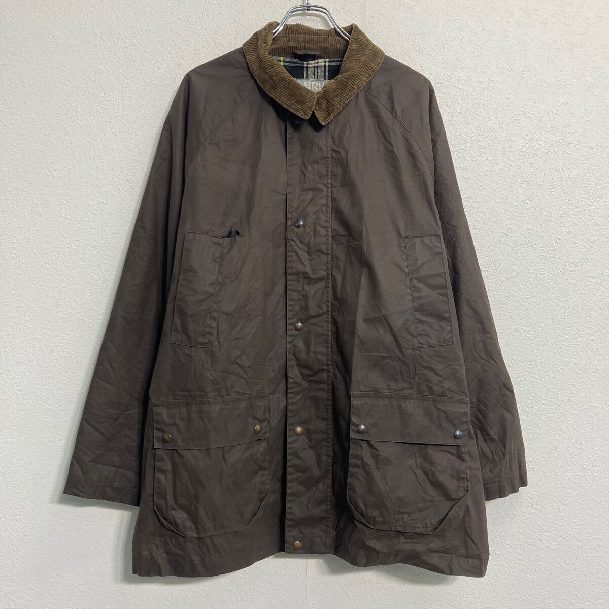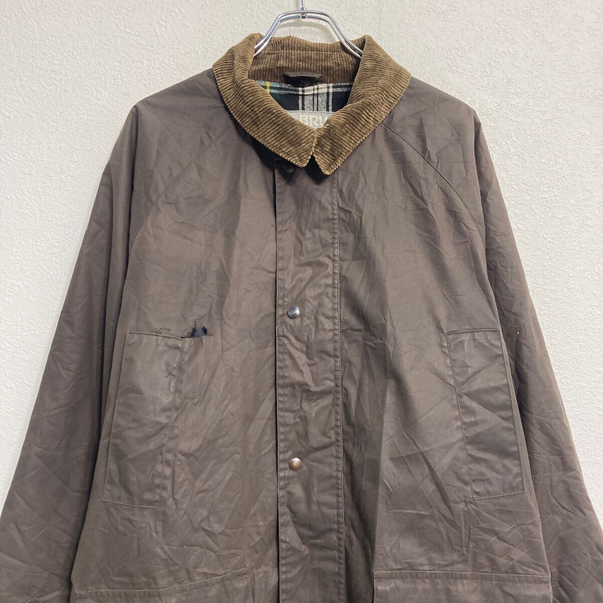 BRUGI オイルドジャケット XL~ ブラウン ビッグサイズ 襟ゴーデュロイ 裏地チェック 古着卸 アメリカ仕入 a611-8764