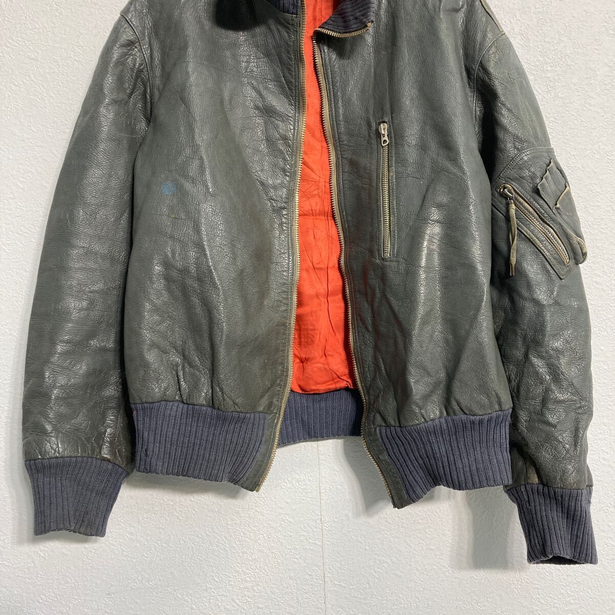 ドイツ軍 ミリタリージャケット L~ グレー 裏オレンジ フライト 防寒 レザー 古着卸 アメリカ仕入 a612-5001