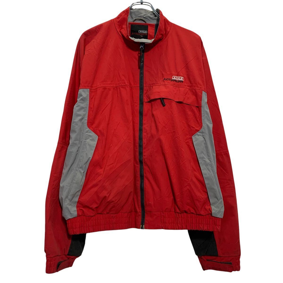 ワークジャケット L レッド グレー ジップアップ ラグラン ワンポイント ロゴ 作業着 アウター 古着卸 アメリカ仕入 a612-5068