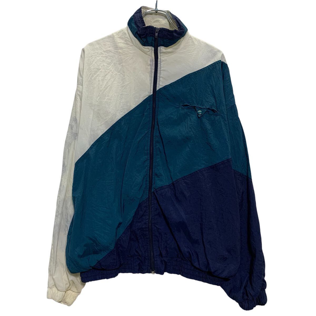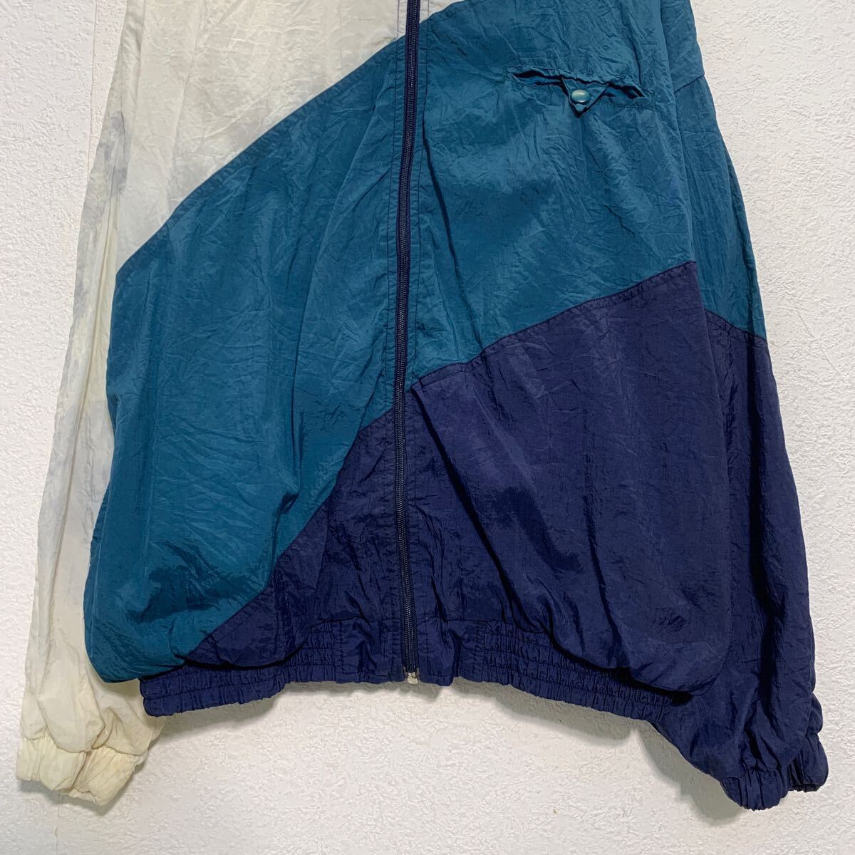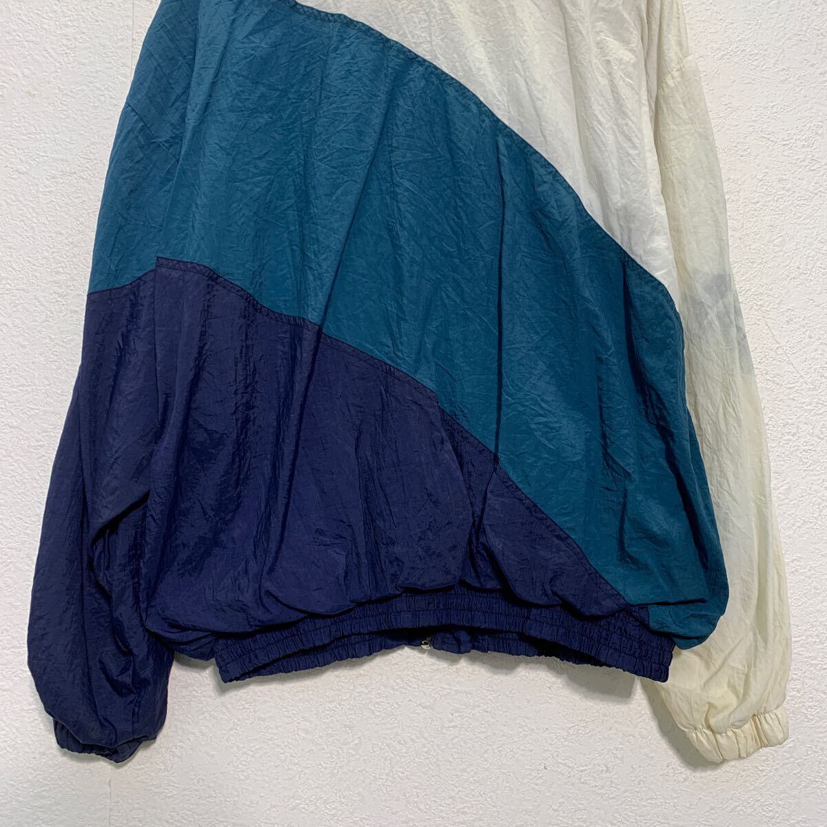 ナイロンジャケット L ホワイト ブルー ネイビー ジップアップ ラグラン スポーティー アウター 薄手 古着卸 アメリカ仕入 a612-5072