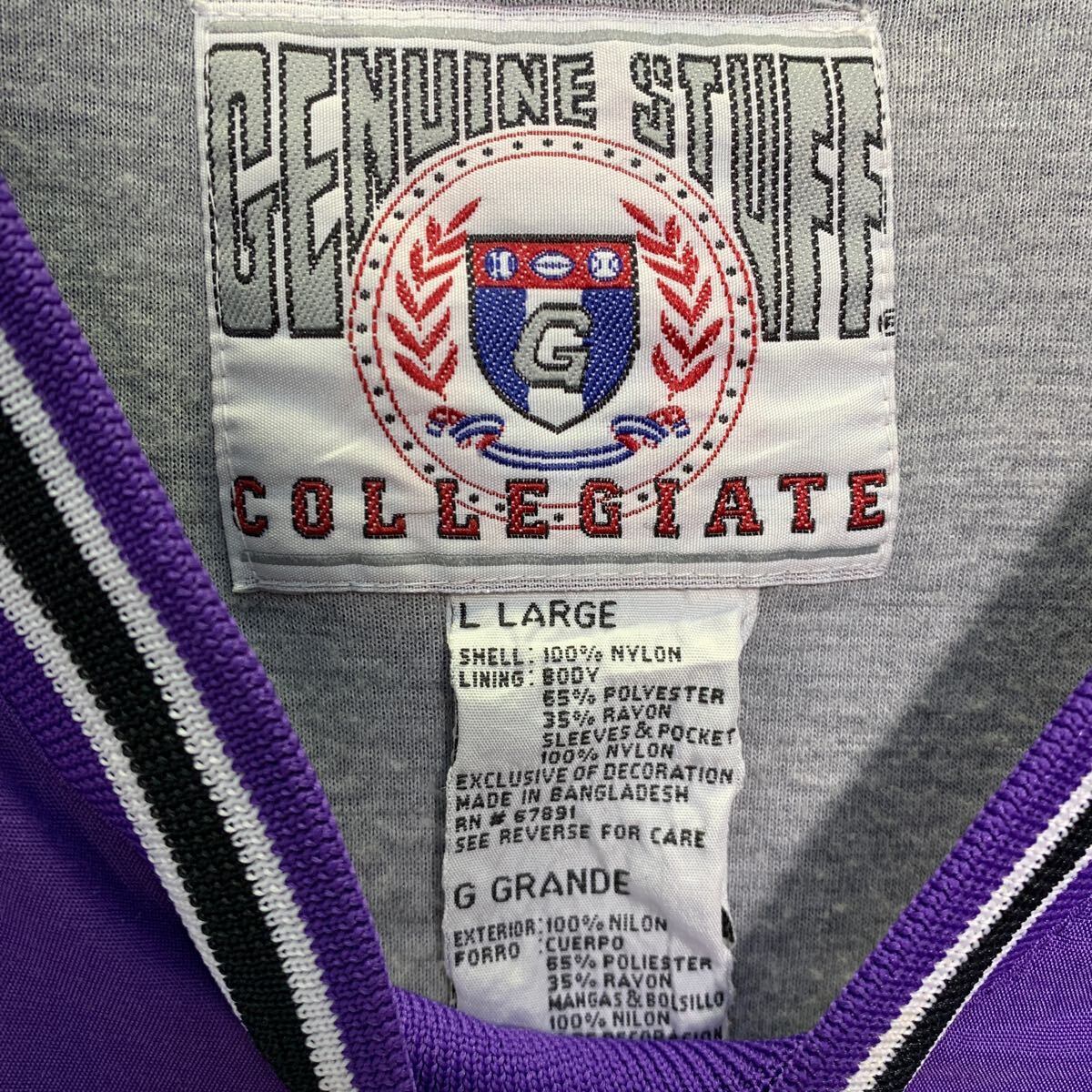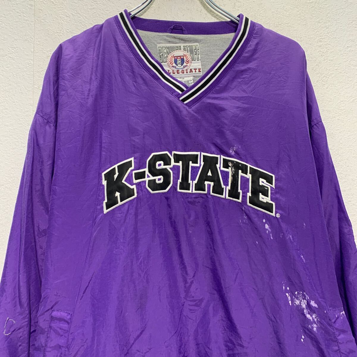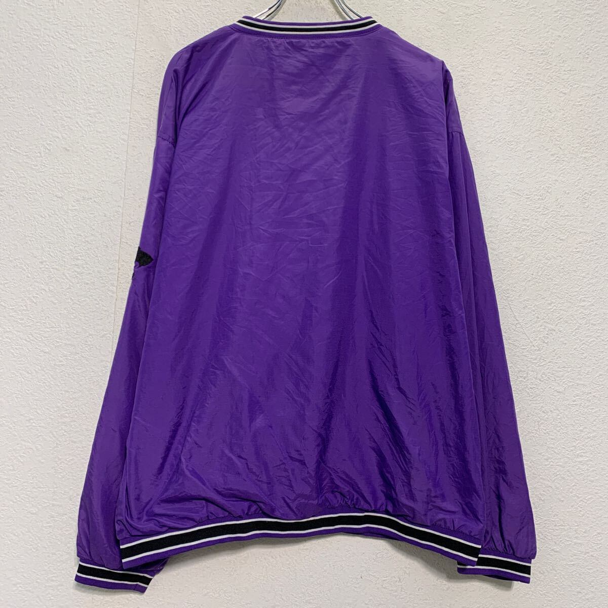 ナイロンプルオーバー L パープル Vネック 刺繍 アームプリント スポーティー アウター 古着卸 アメリカ仕入 a612-5078