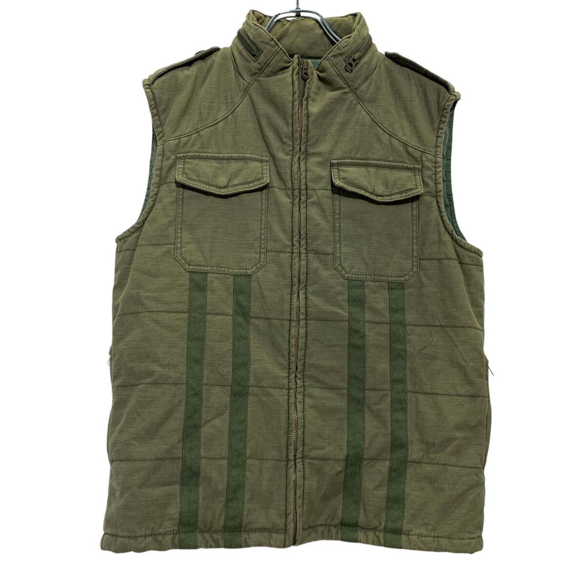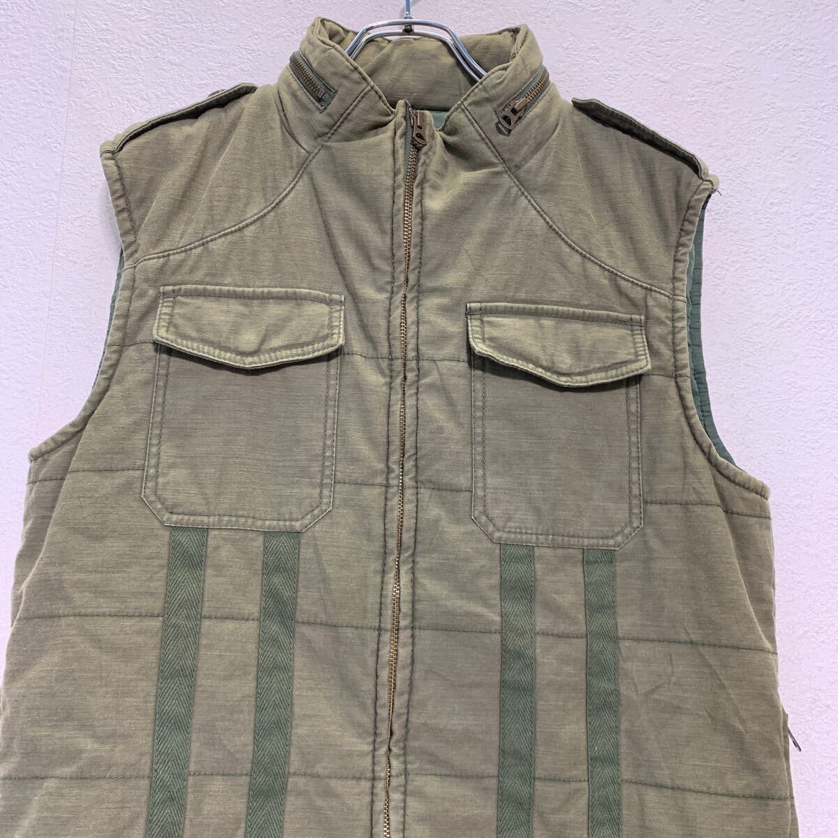 BEAMS 中綿ベスト L カーキ ビームス ジップアップ エポレット ミリタリー風 古着卸 アメリカ仕入 a612-5080