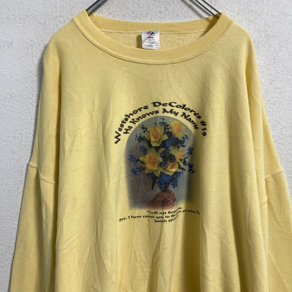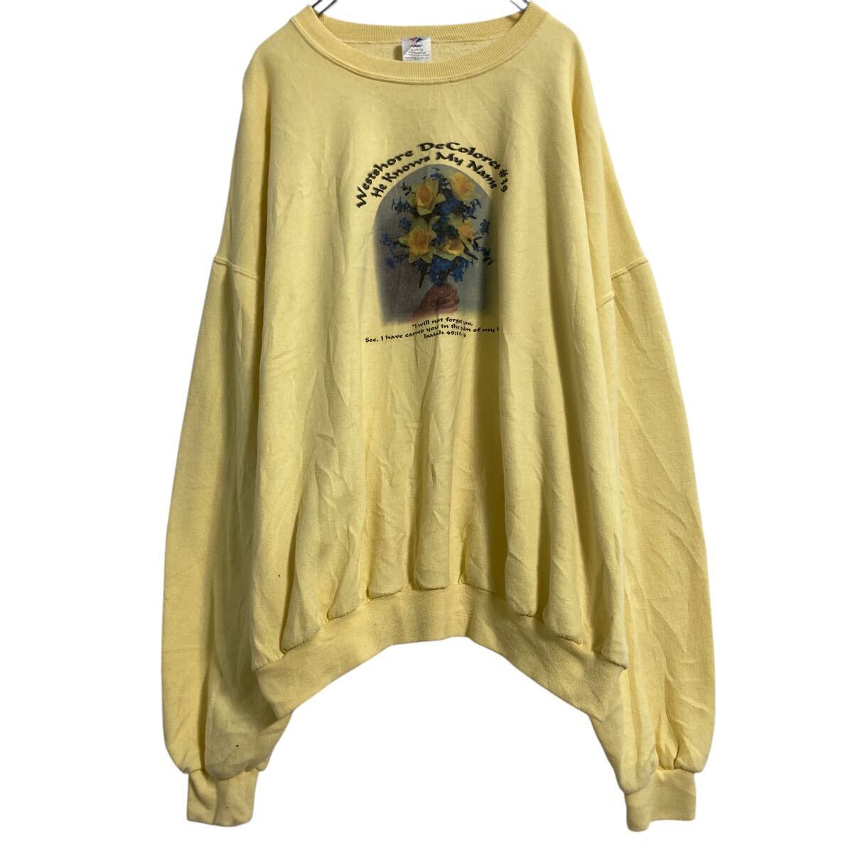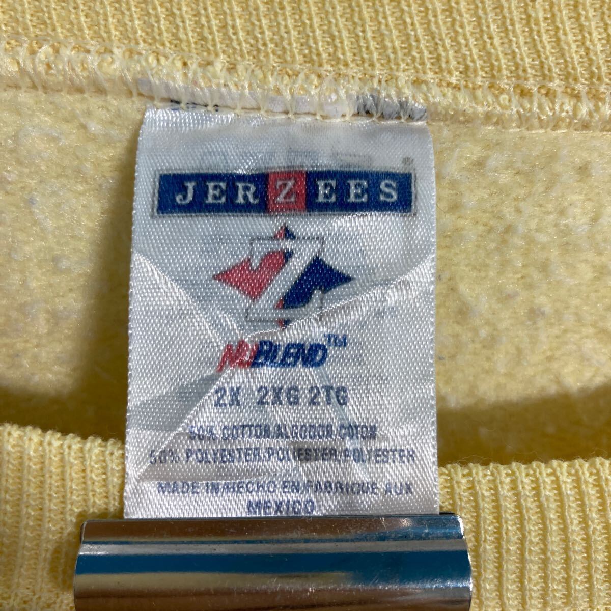 JERZEES プリントスウェット トレーナー XXL イエロー ジャージーズ プルオーバー 裏起毛 90s ビッグサイズ 古着卸 アメリカ仕入 a612-5096