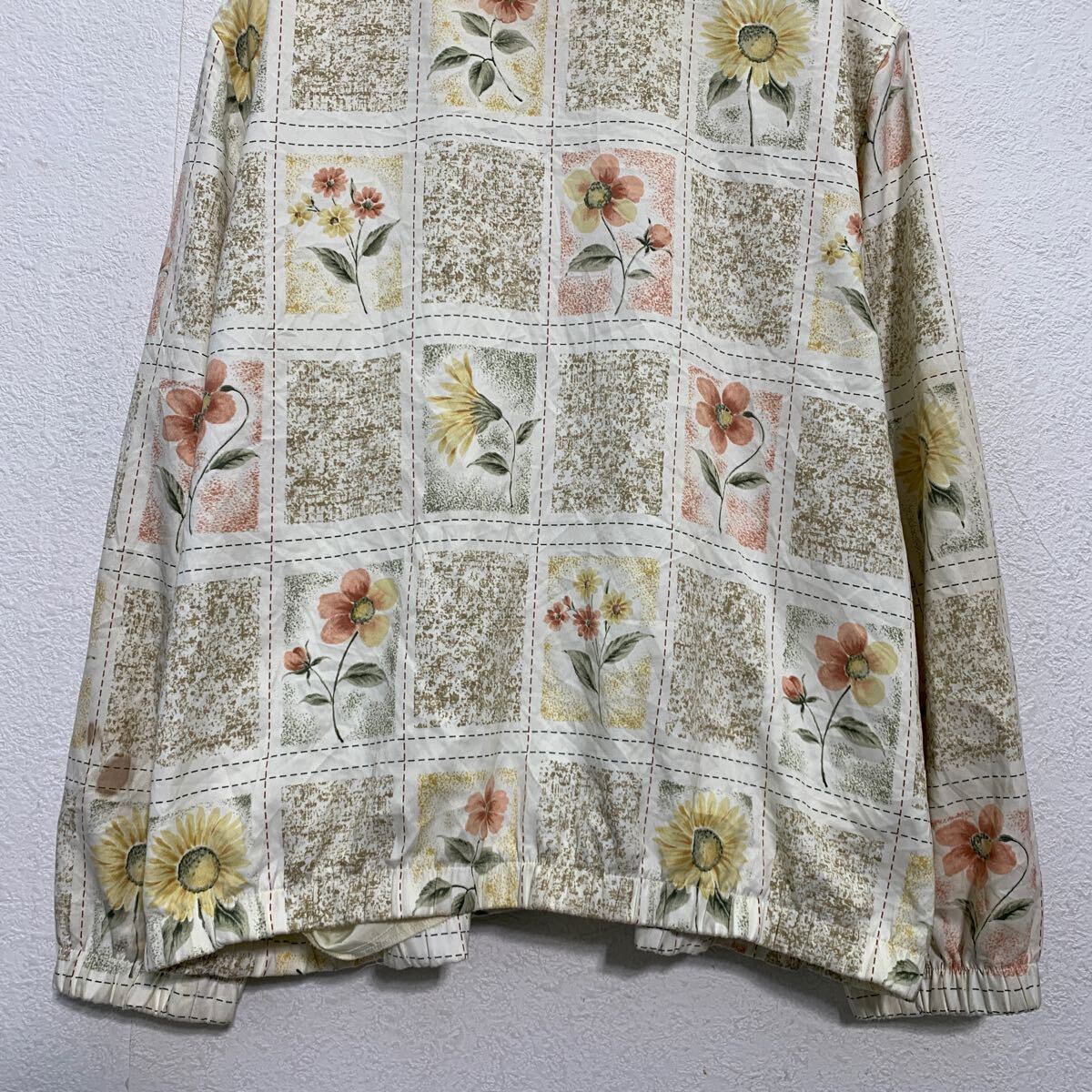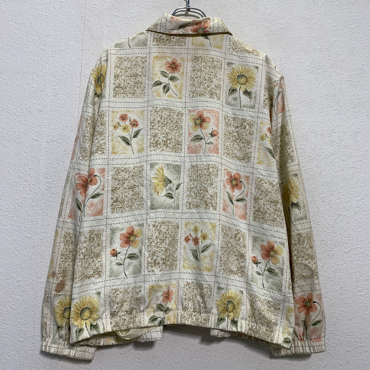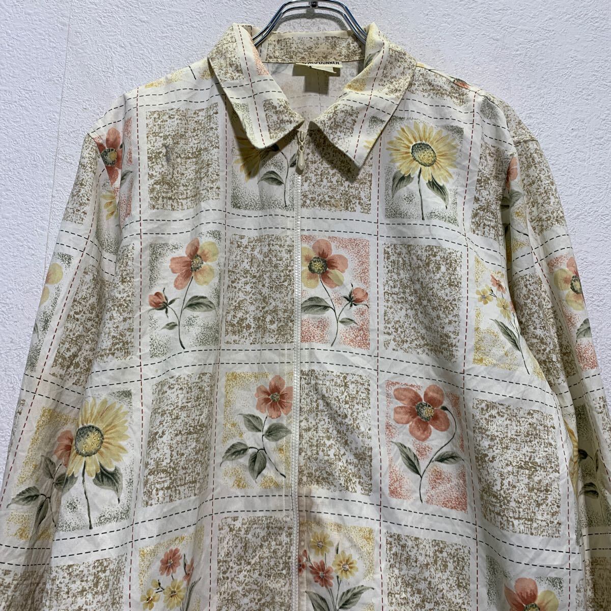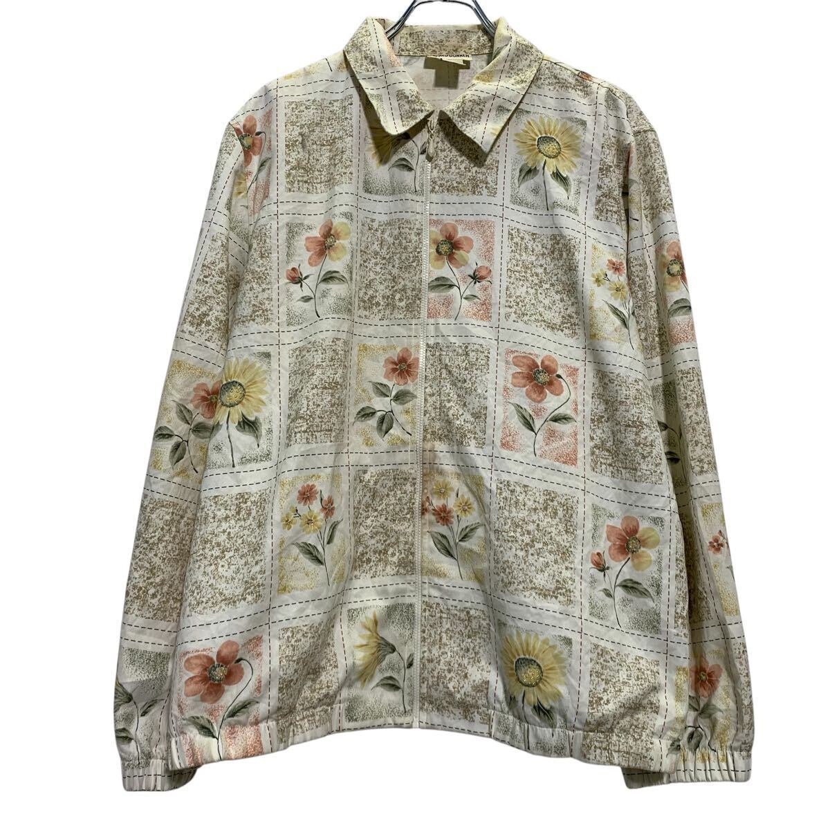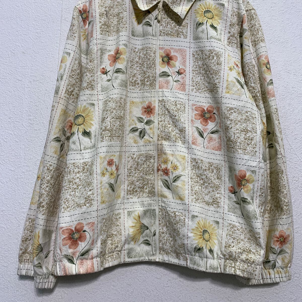 ジャケット レディース L 程 ホワイト マルチカラー ジップアップ 総柄 花柄 肩パッド アウター 薄手 古着卸 アメリカ仕入 a612-5112