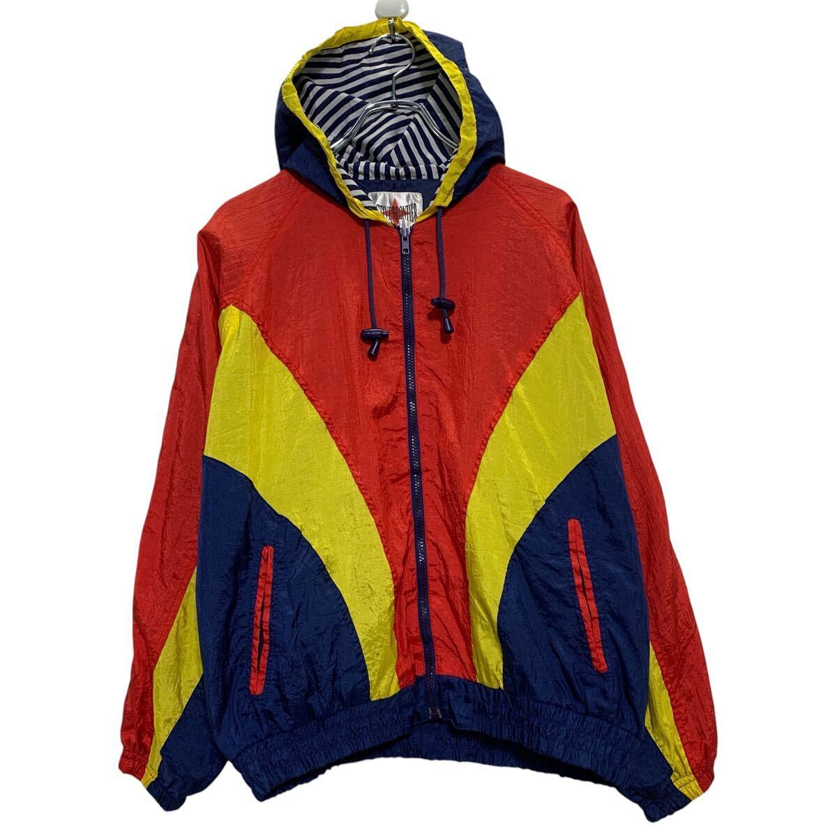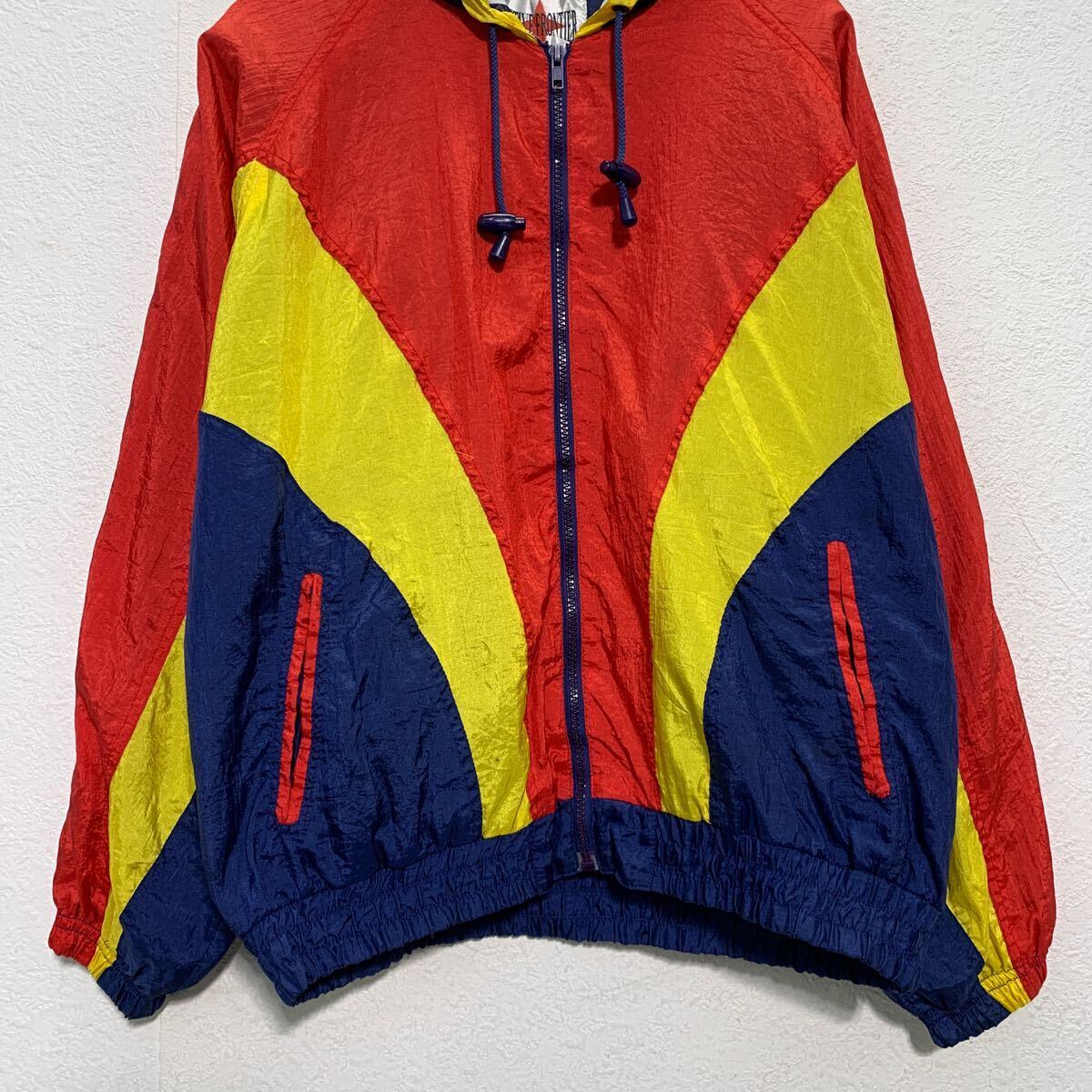 ナイロンジャケット S レッド イエロー ネイビー ジップアップ ラグラン フード付き アウター 薄手 古着卸 アメリカ仕入 a612-5113