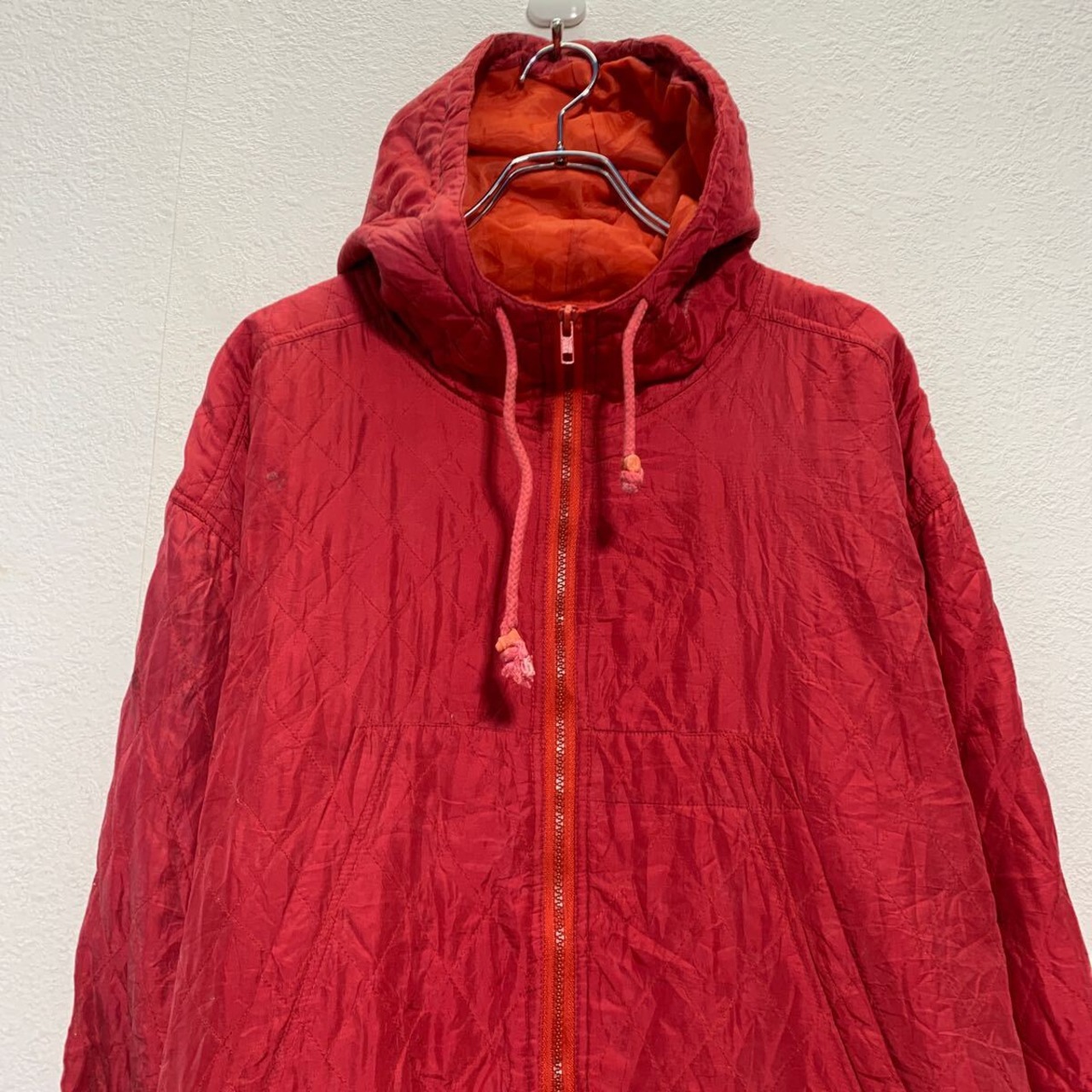 キルティングジャケット L レッド ジップアップ フード付き シンプル アウター 古着卸 アメリカ仕入 a612-5155