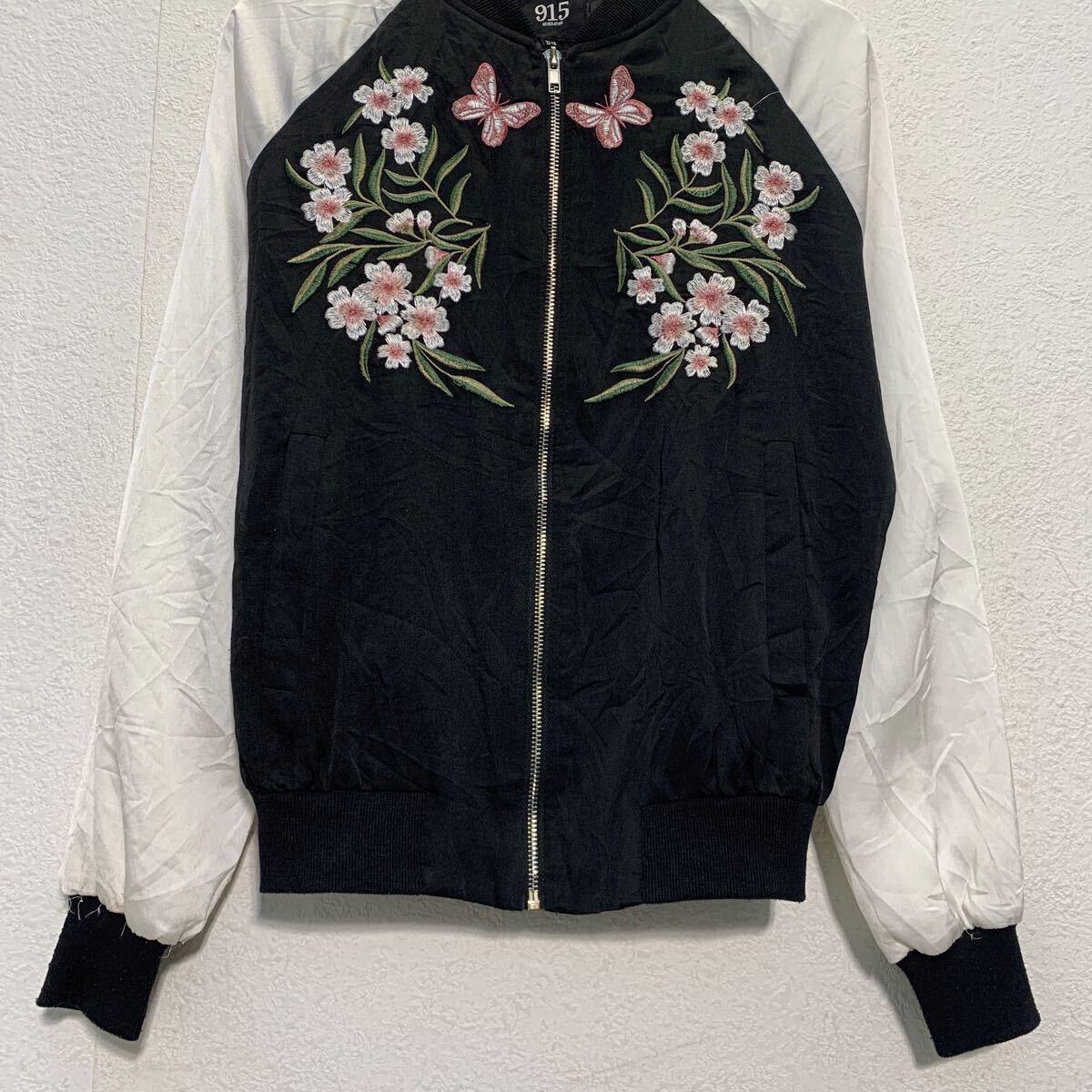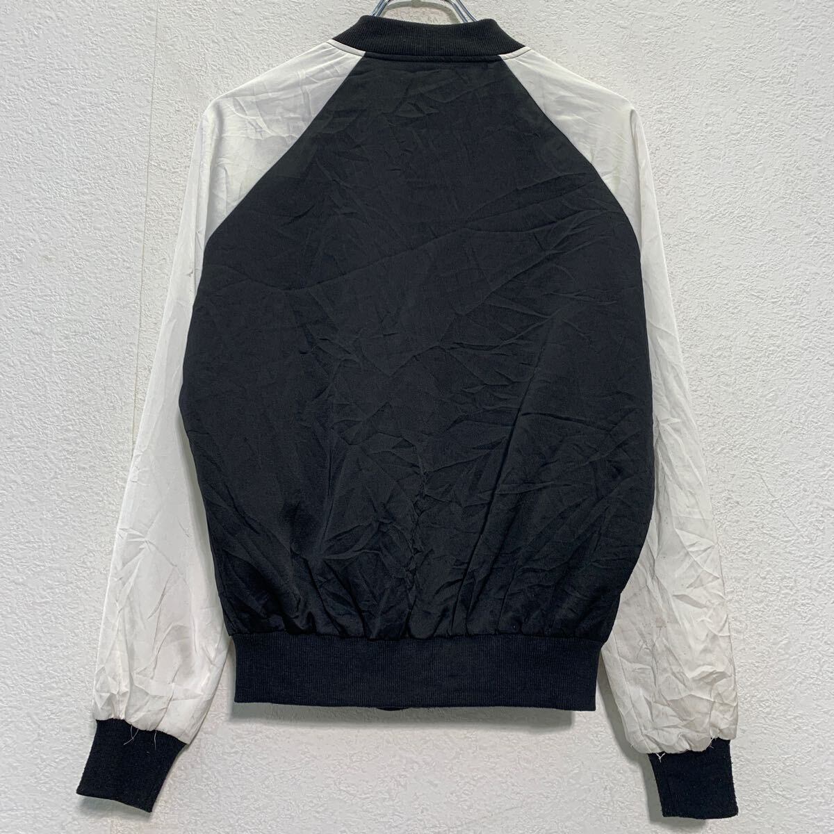 スカジャン ジャケット M 程 ブラック ホワイト ジップアップ ラグラン 花柄 アウター 薄手 古着卸 アメリカ仕入 a612-5170