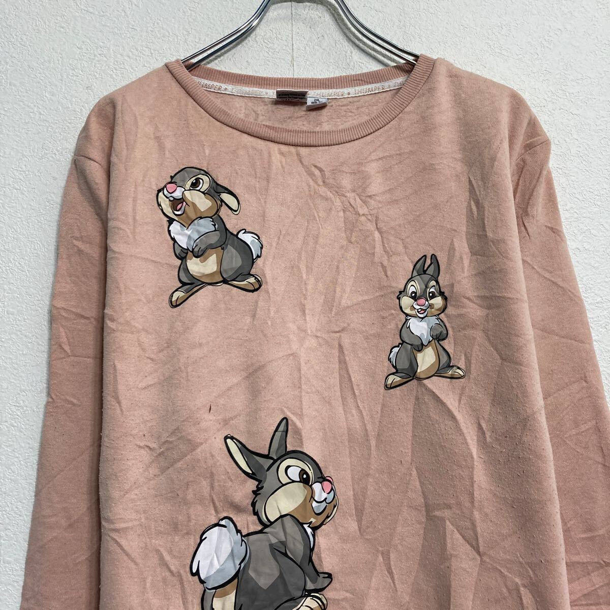 Disney キャラクタースウェット トレーナー 2XL ピンク ビッグサイズ プルオーバー 裏起毛 古着卸 アメリカ仕入 a612-5189