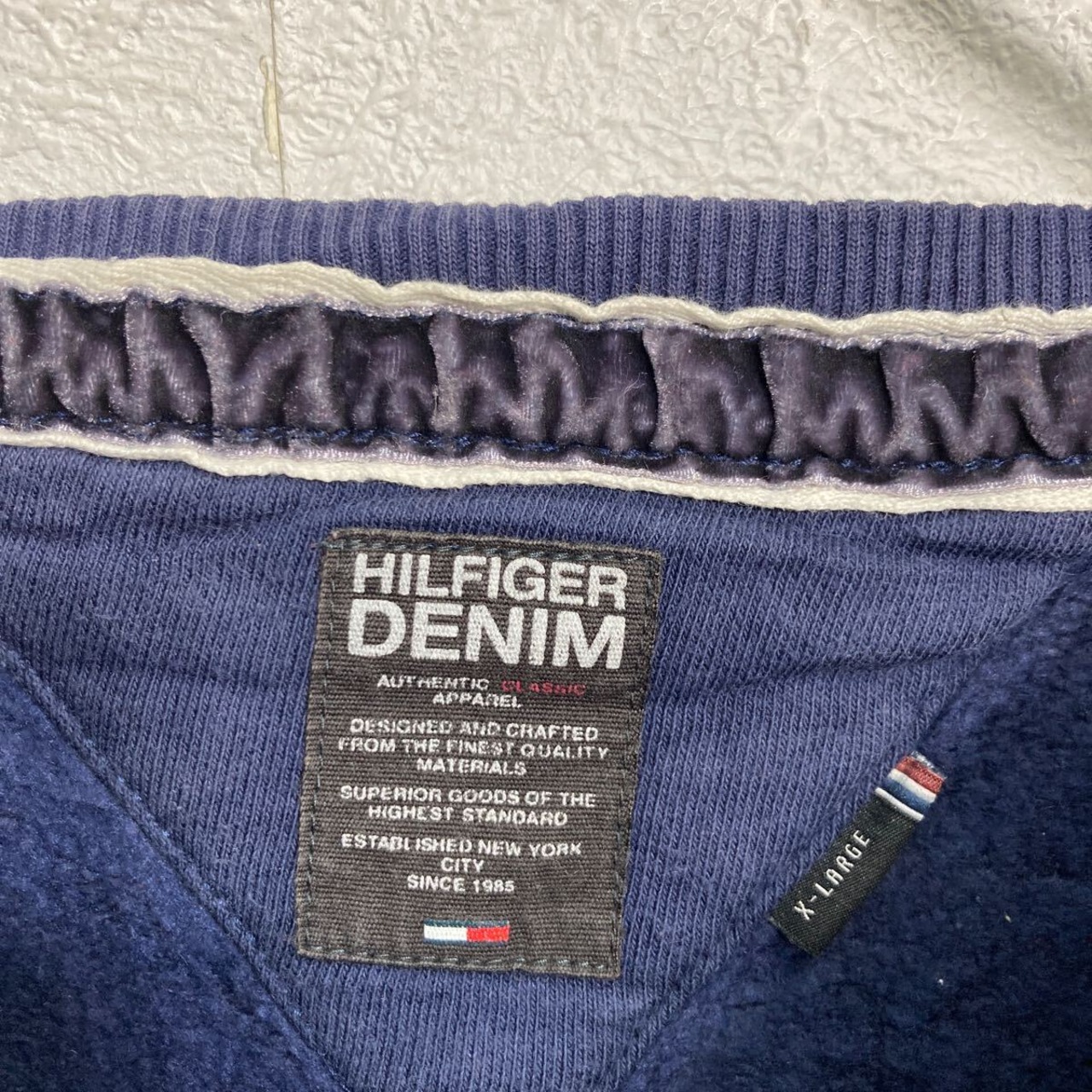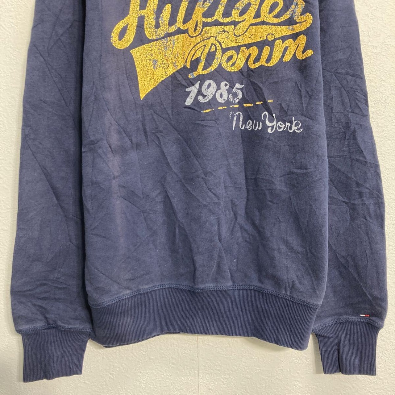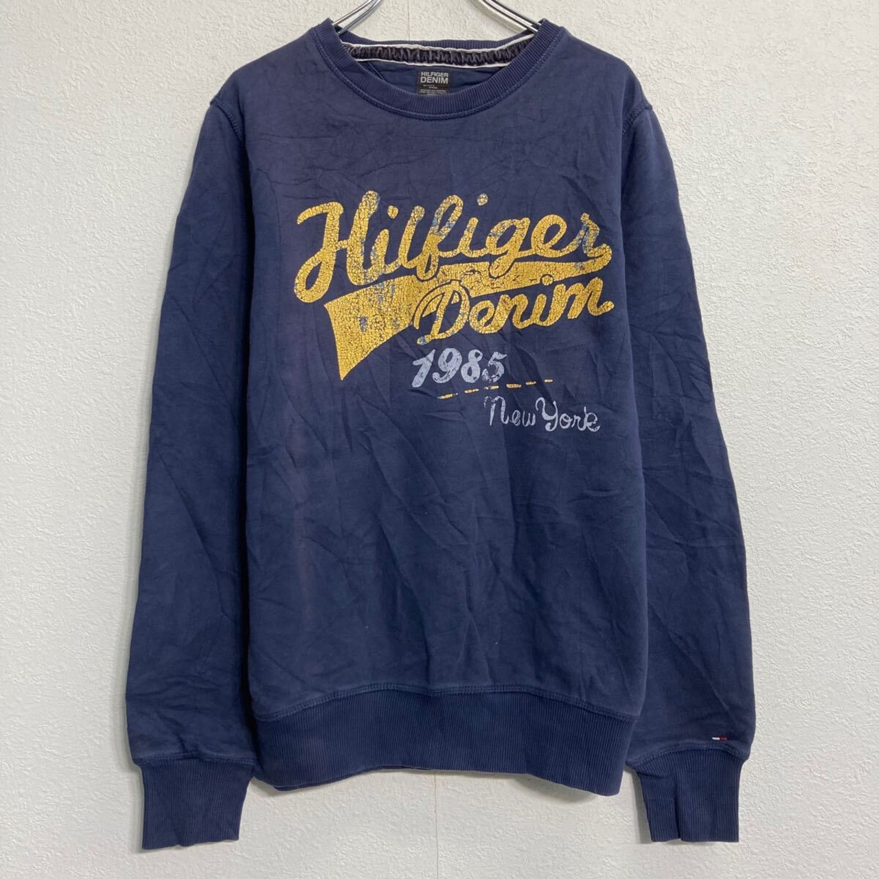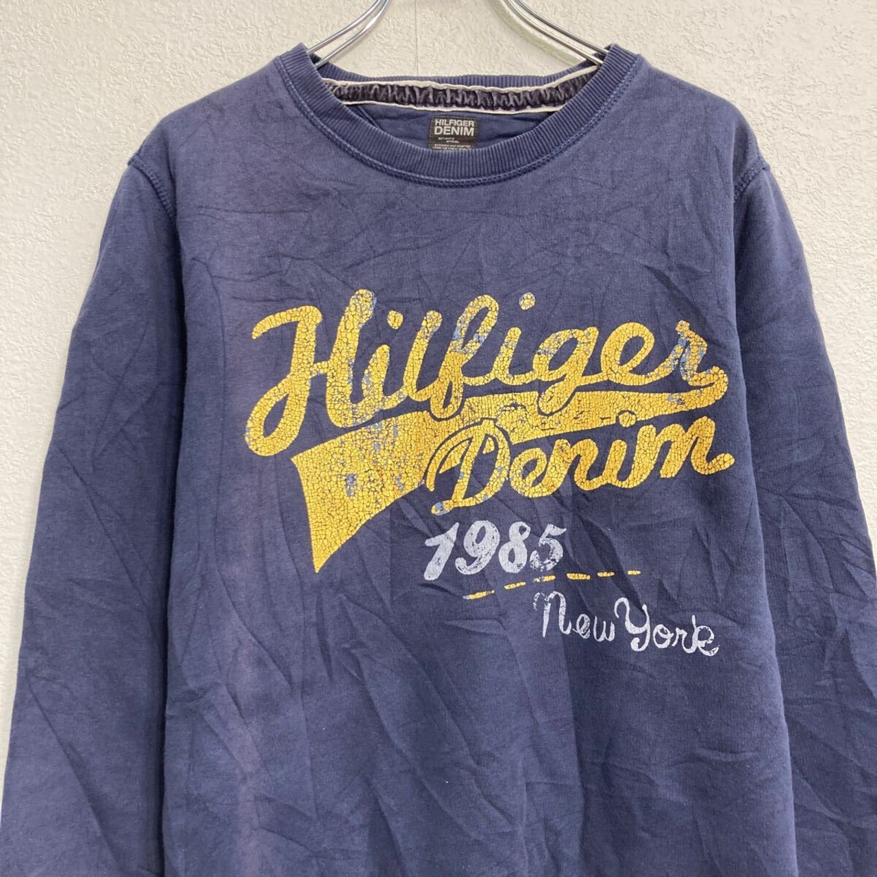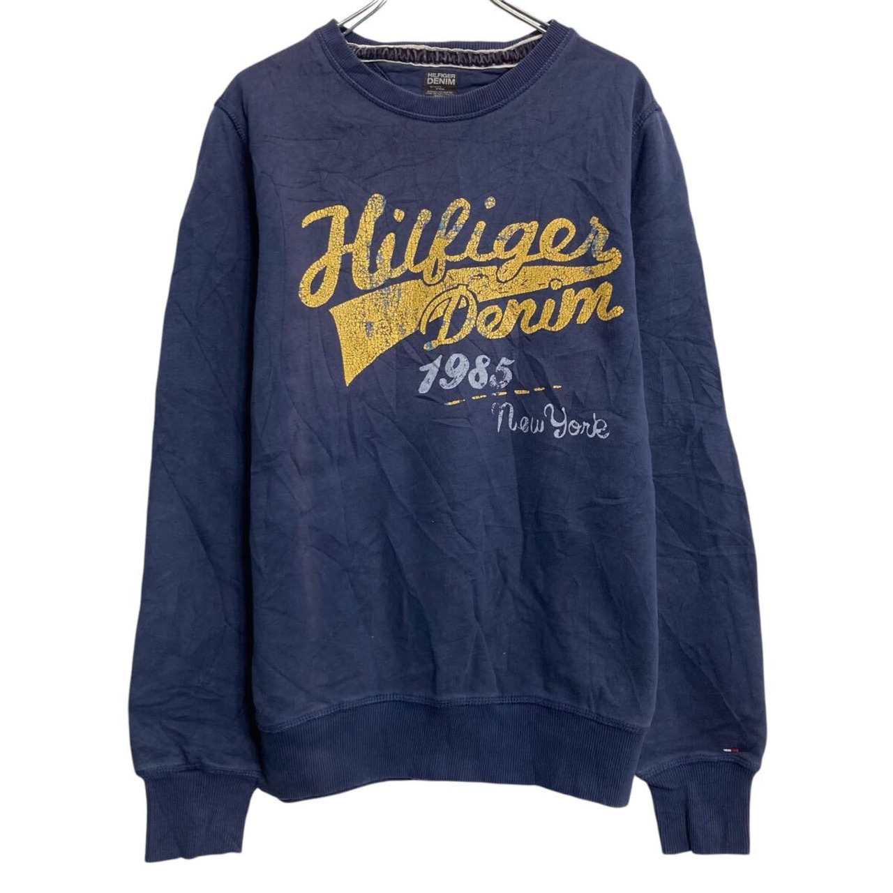 HILFIGER DENIM プリントスウェット トレーナー XL ネイビー ビッグサイズ プルオーバー 裏起毛 古着卸 アメリカ仕入 a612-5190