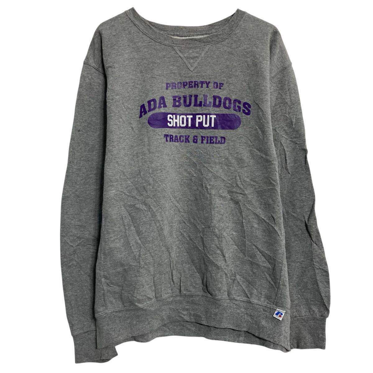 Russell athletic プリントスウェット トレーナー XL~ グレー バッグプリント ビッグサイズ プルオーバー 古着卸 アメリカ仕入 a612-5195