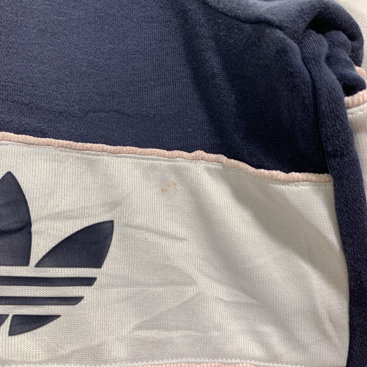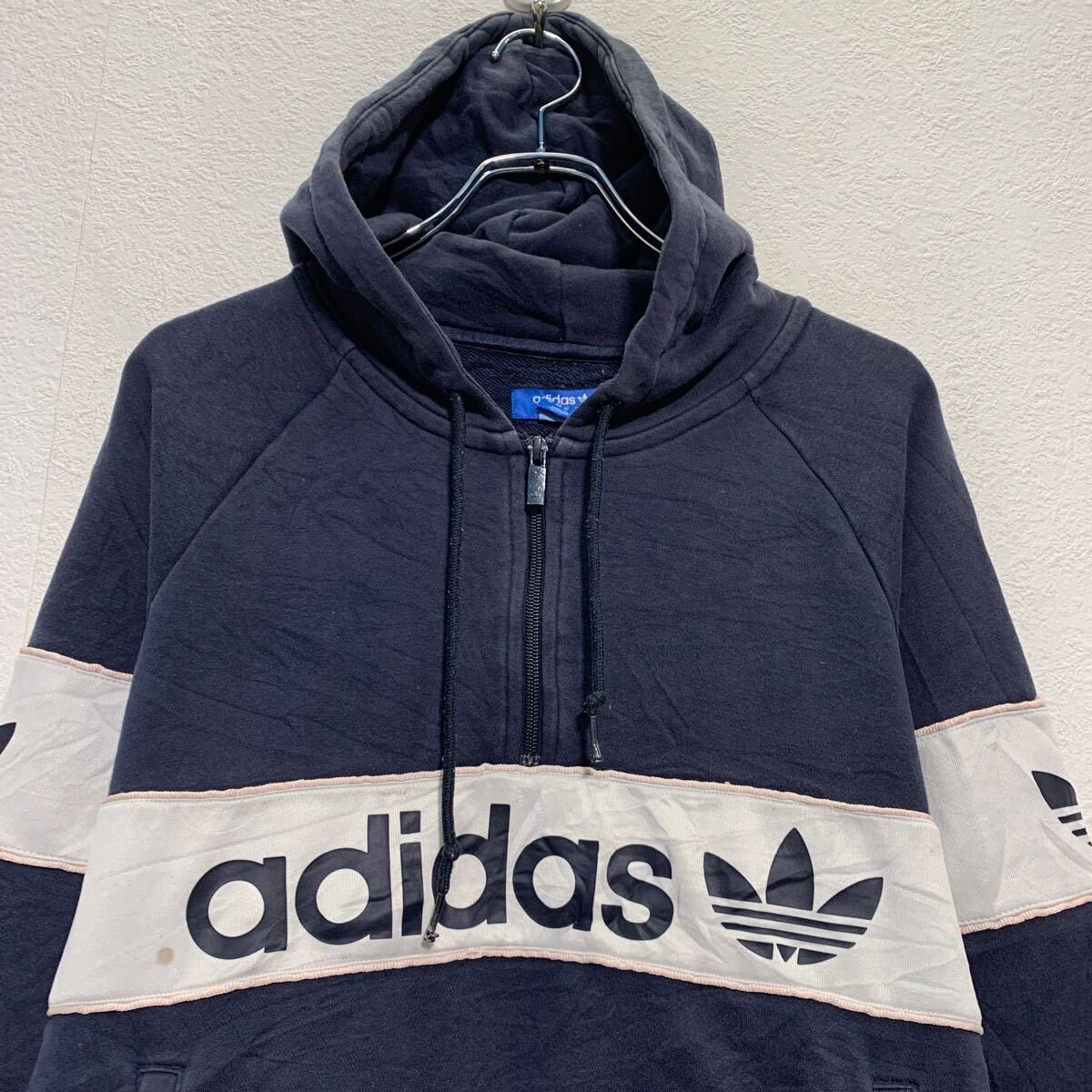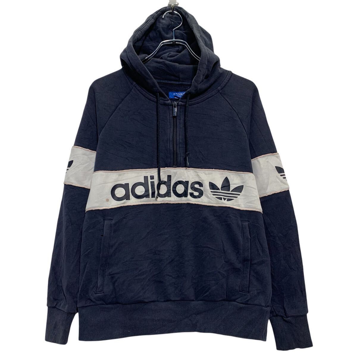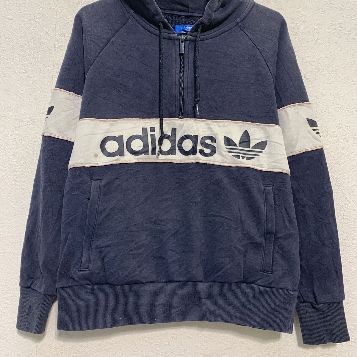 adidas ロゴスウェット パーカー XS ネイビー ホワイト アディダス ハーフジップ ラグラン スポーティー 古着卸 アメリカ仕入 a612-5210