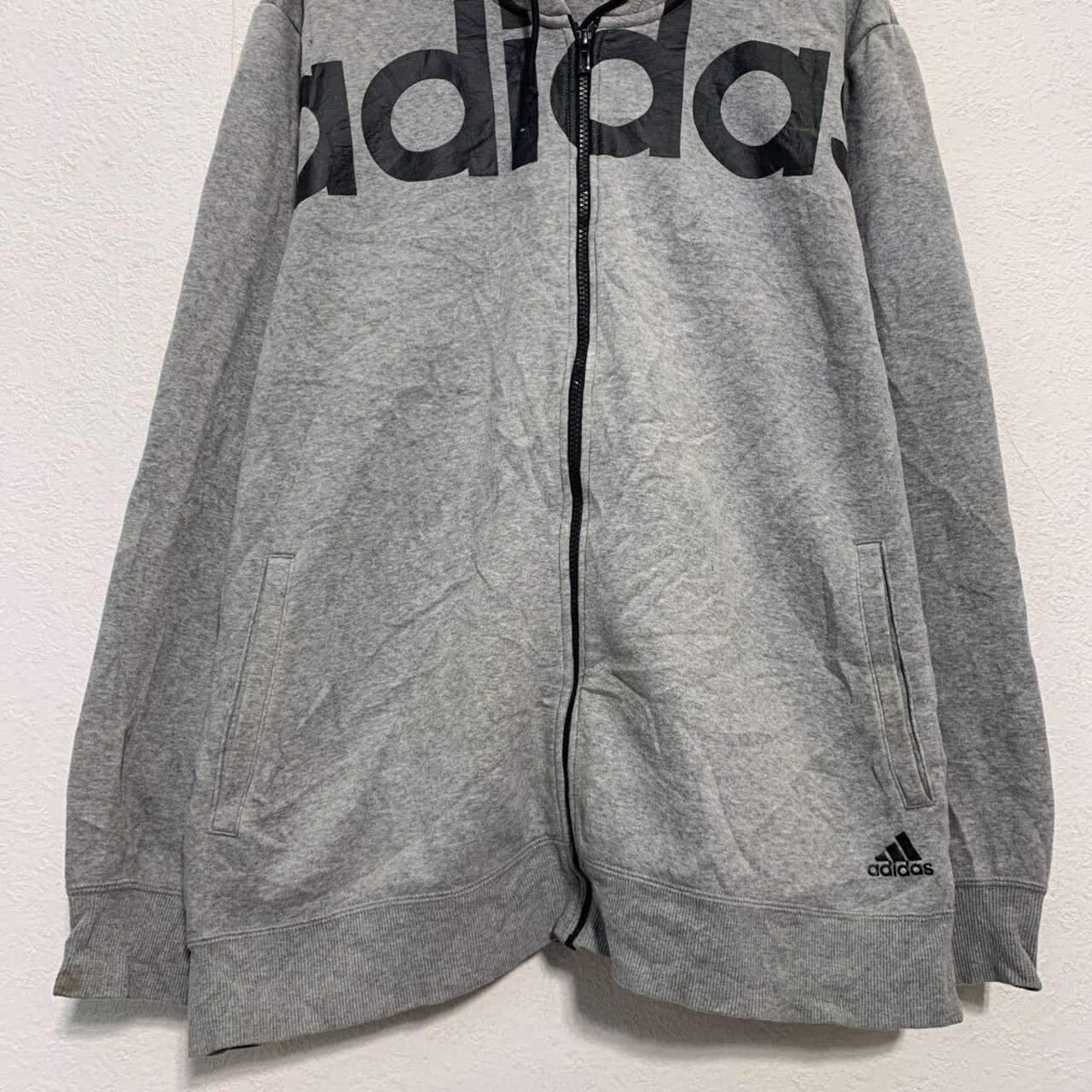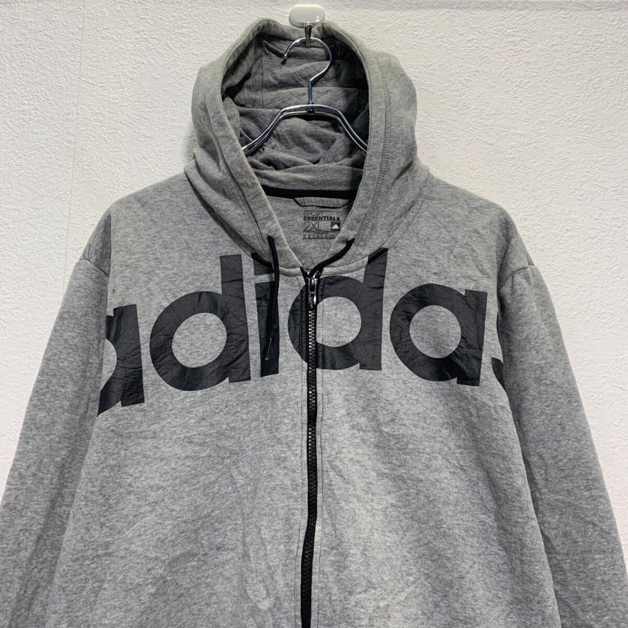 adidas ロゴスウェット パーカー 2XL グレー アディダス ジップアップ ビッグサイズ 裏起毛 スポーティー 古着卸 アメリカ仕入 a612-5213