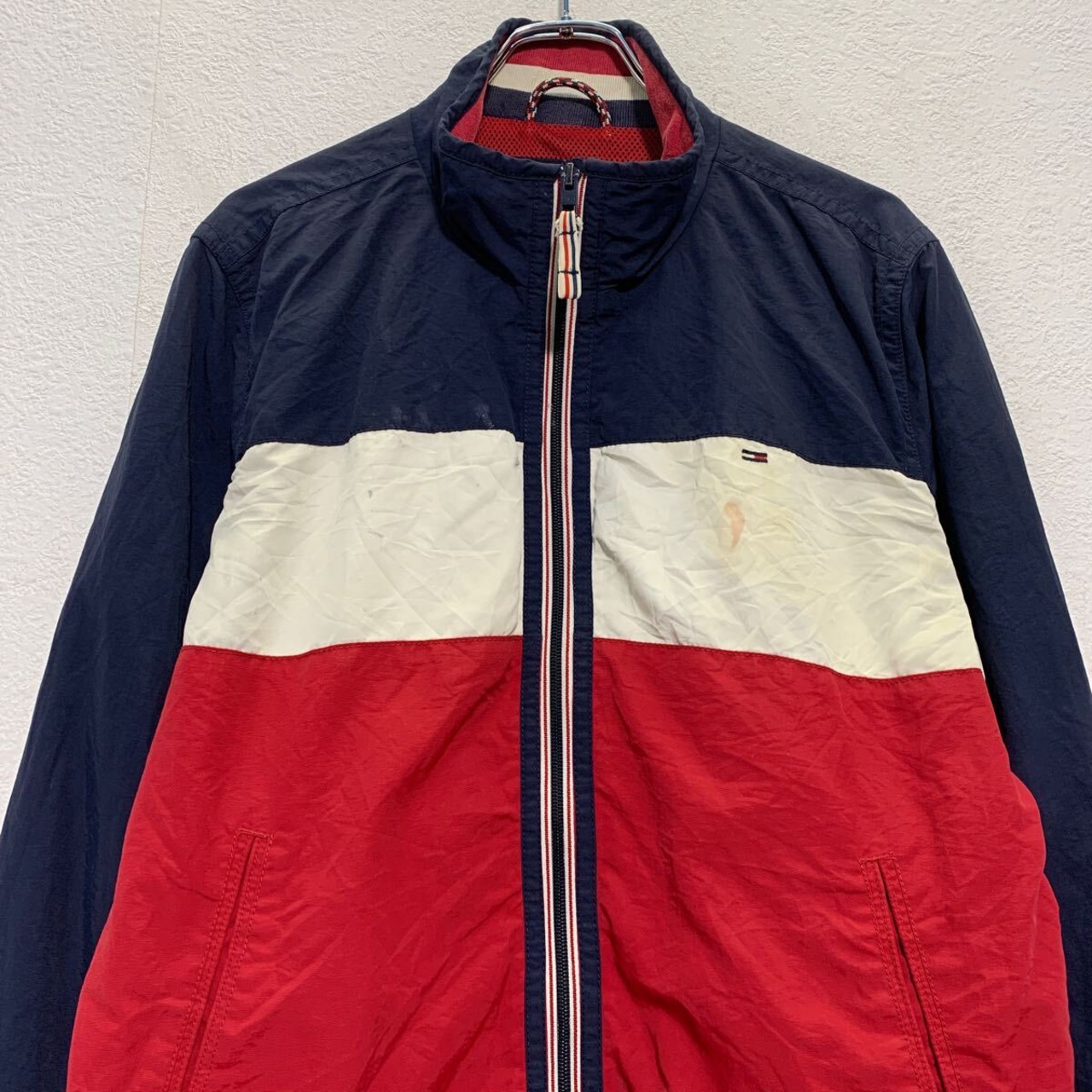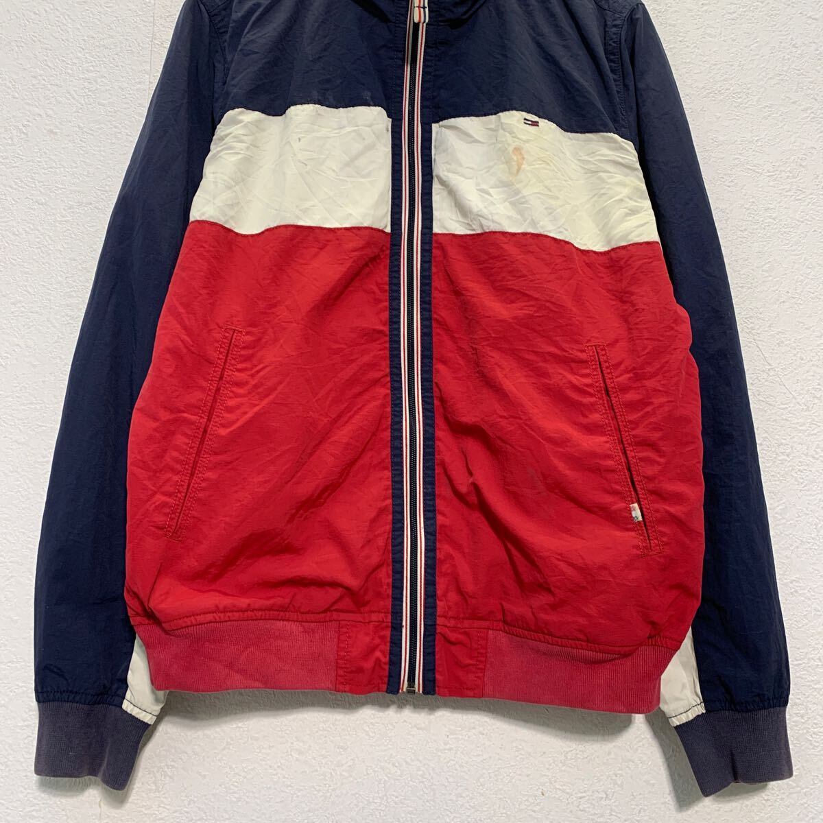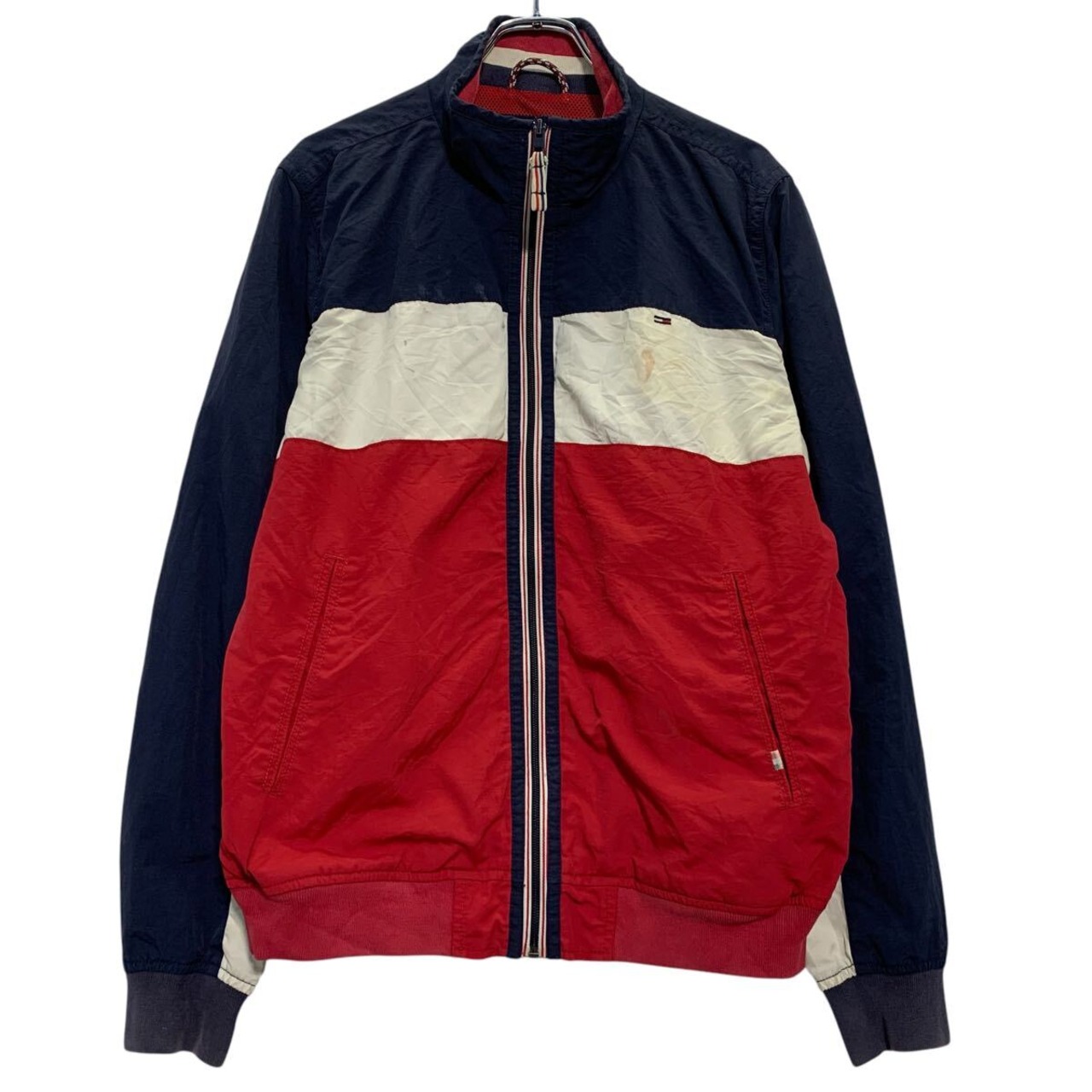 HILFIGER DENIM ジャケット L 程 レッド ホワイト ネイビー ヒルフィガーデニム ジップアップ ワンポイント 古着卸 アメリカ仕入 a612-5218