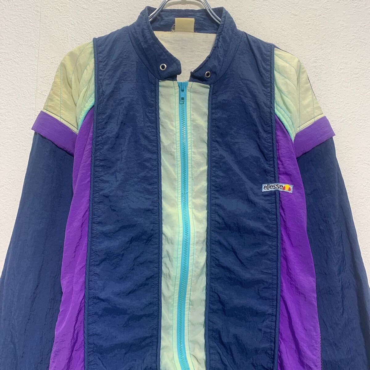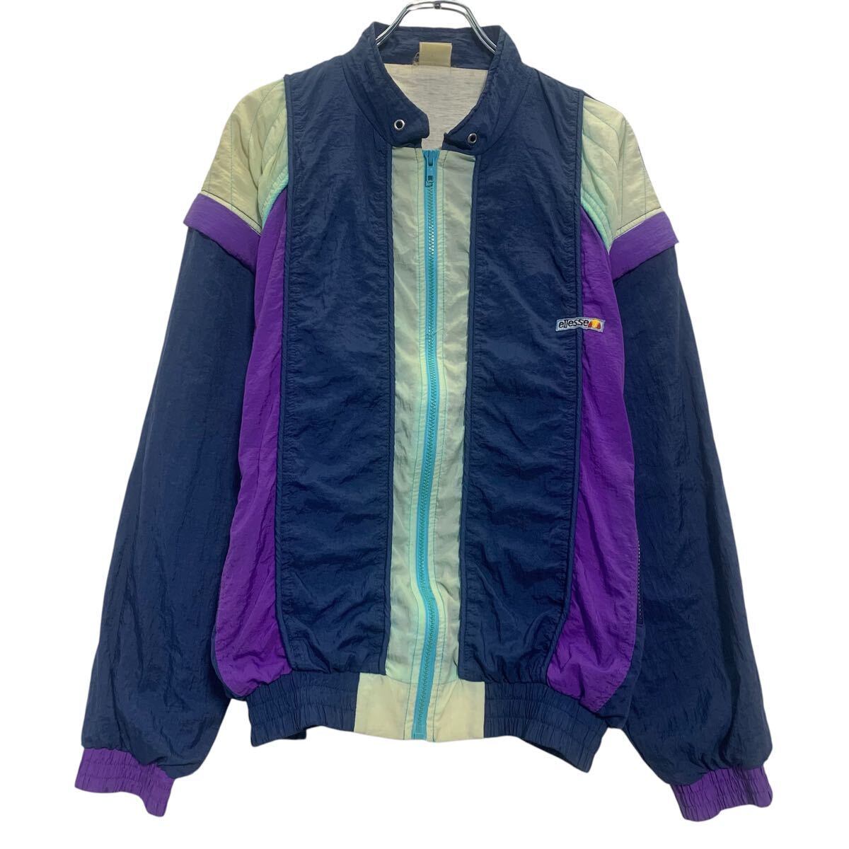ellesse ジャケット L 程 ネイビー パープル ホワイト エレッセ ジップアップ ワンポイント ロゴ アウター 古着卸 アメリカ仕入 a612-5220