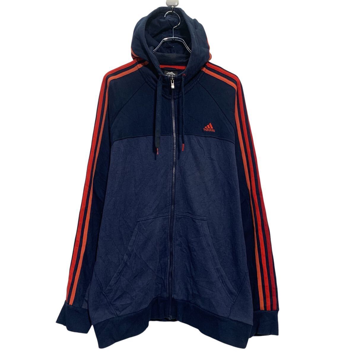 adidas ロゴスウェット パーカー XL ネイビー アディダス ジップアップ ビッグサイズ ラグラン ライン 古着卸 アメリカ仕入 a612-5295
