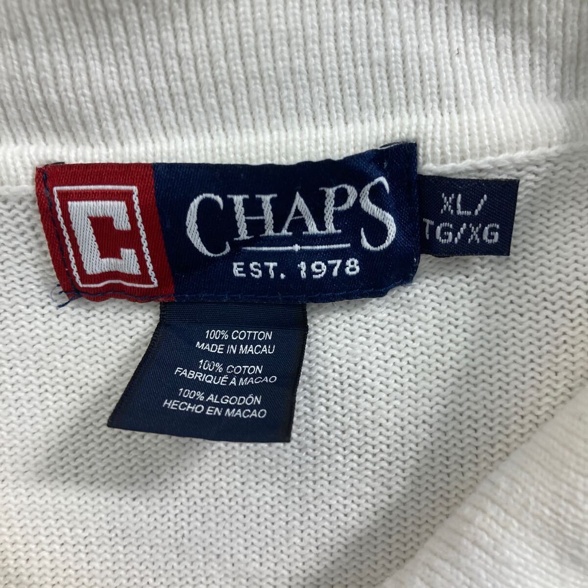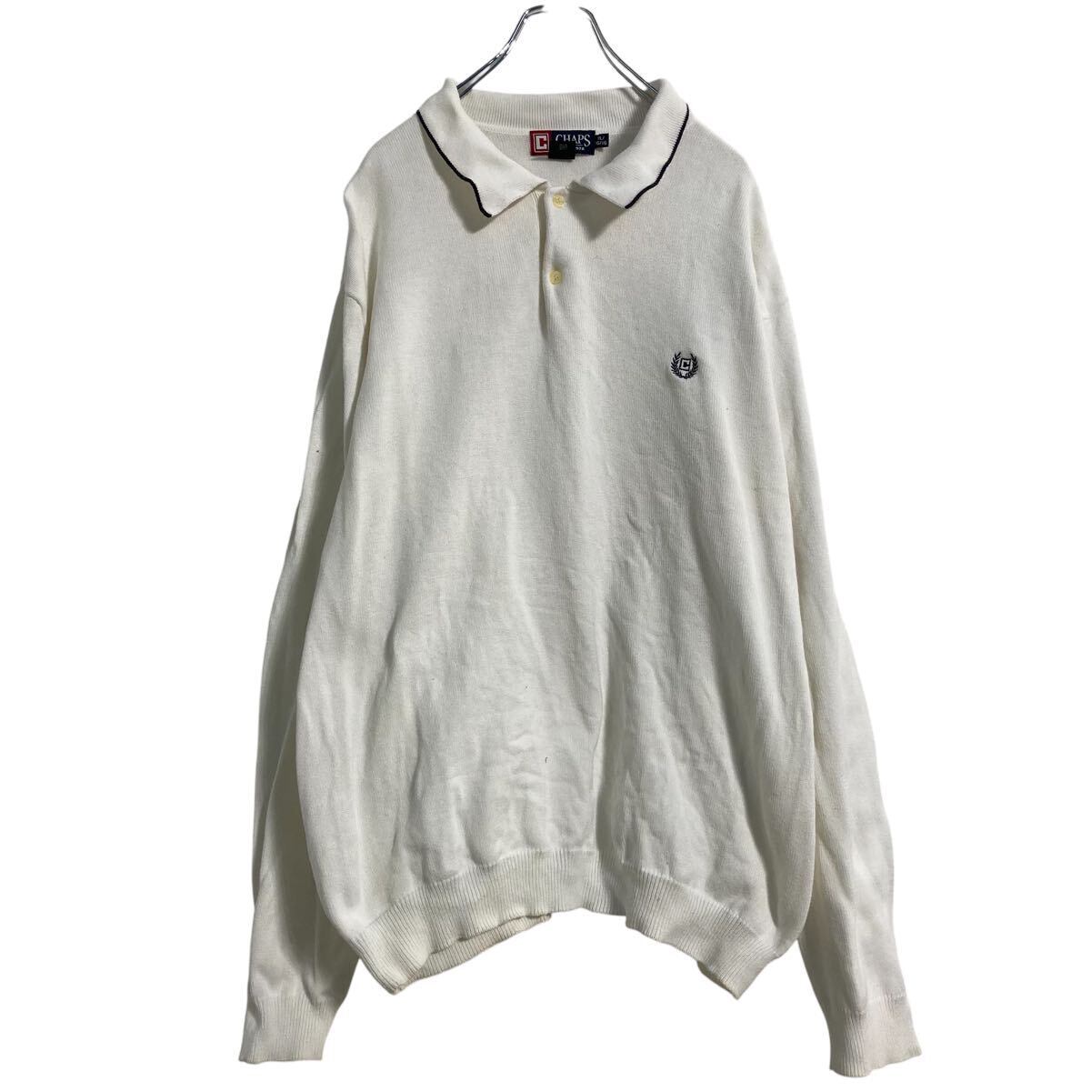 CHAPS 長袖 コットンニット ポロシャツ XL ホワイト チャップス ワンポイントロゴ 古着卸 アメリカ仕入 a612-5357