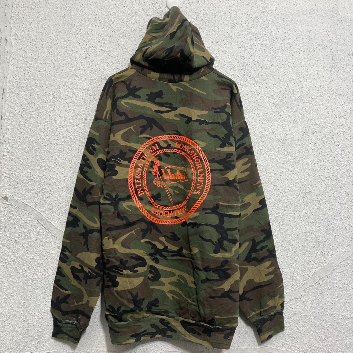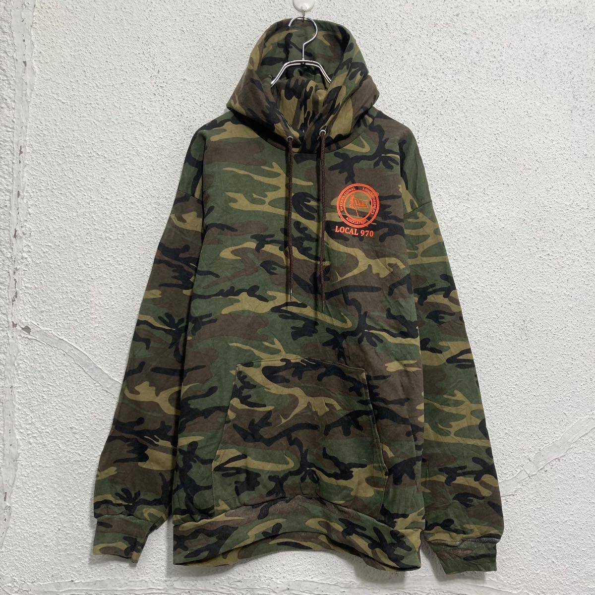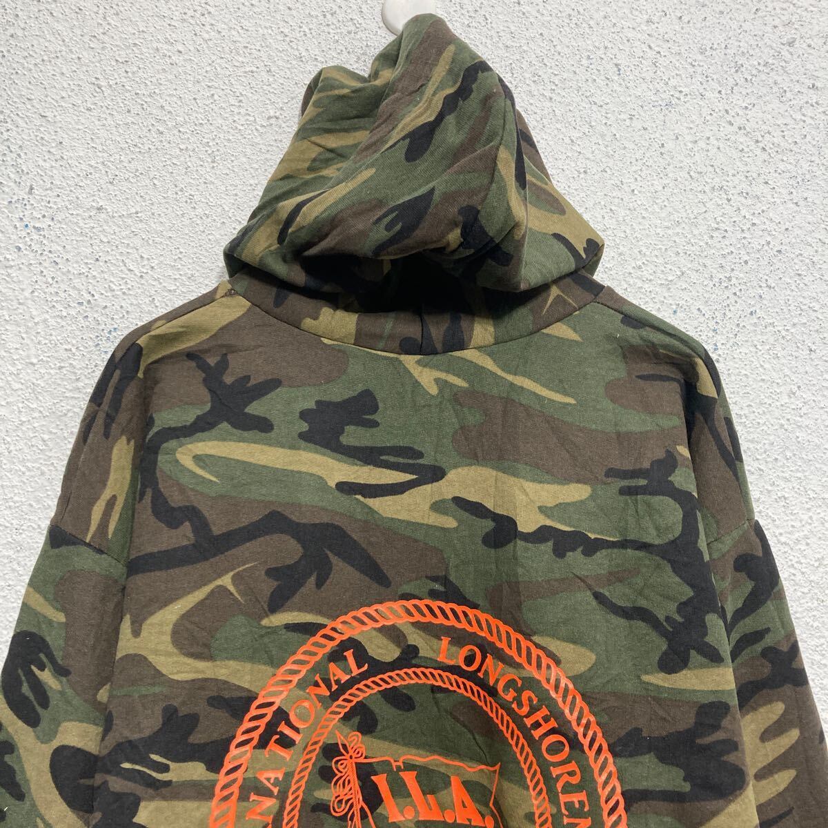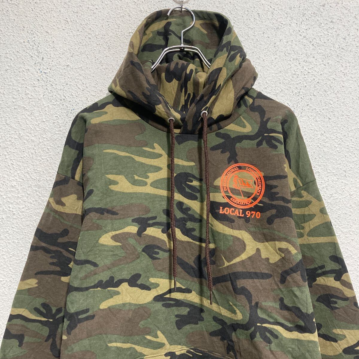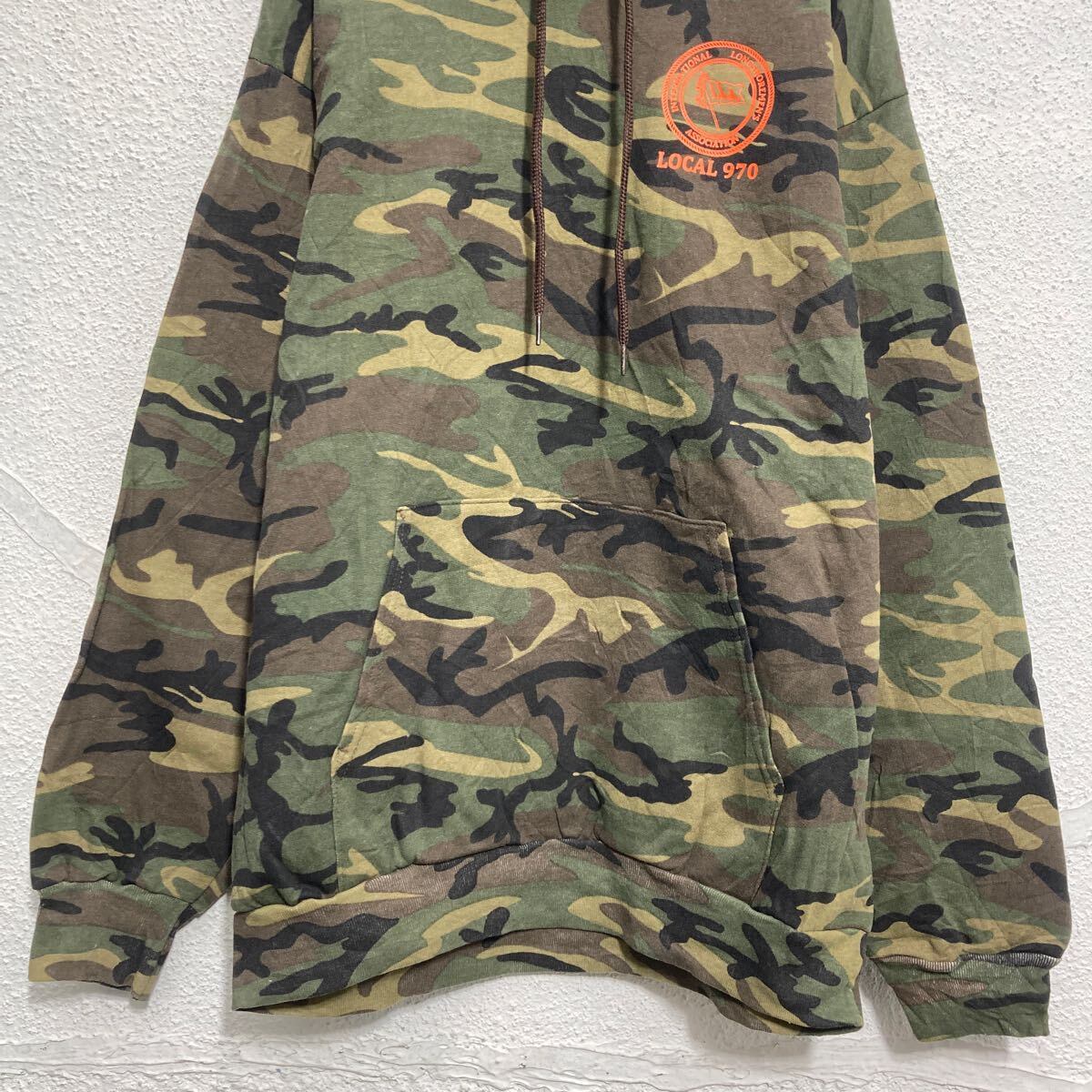 PORT&COMPANY プリントスウェット パーカー L カモフラージュ 迷彩 裏起毛 バッグプリント 古着卸 アメリカ仕入 a612-5418