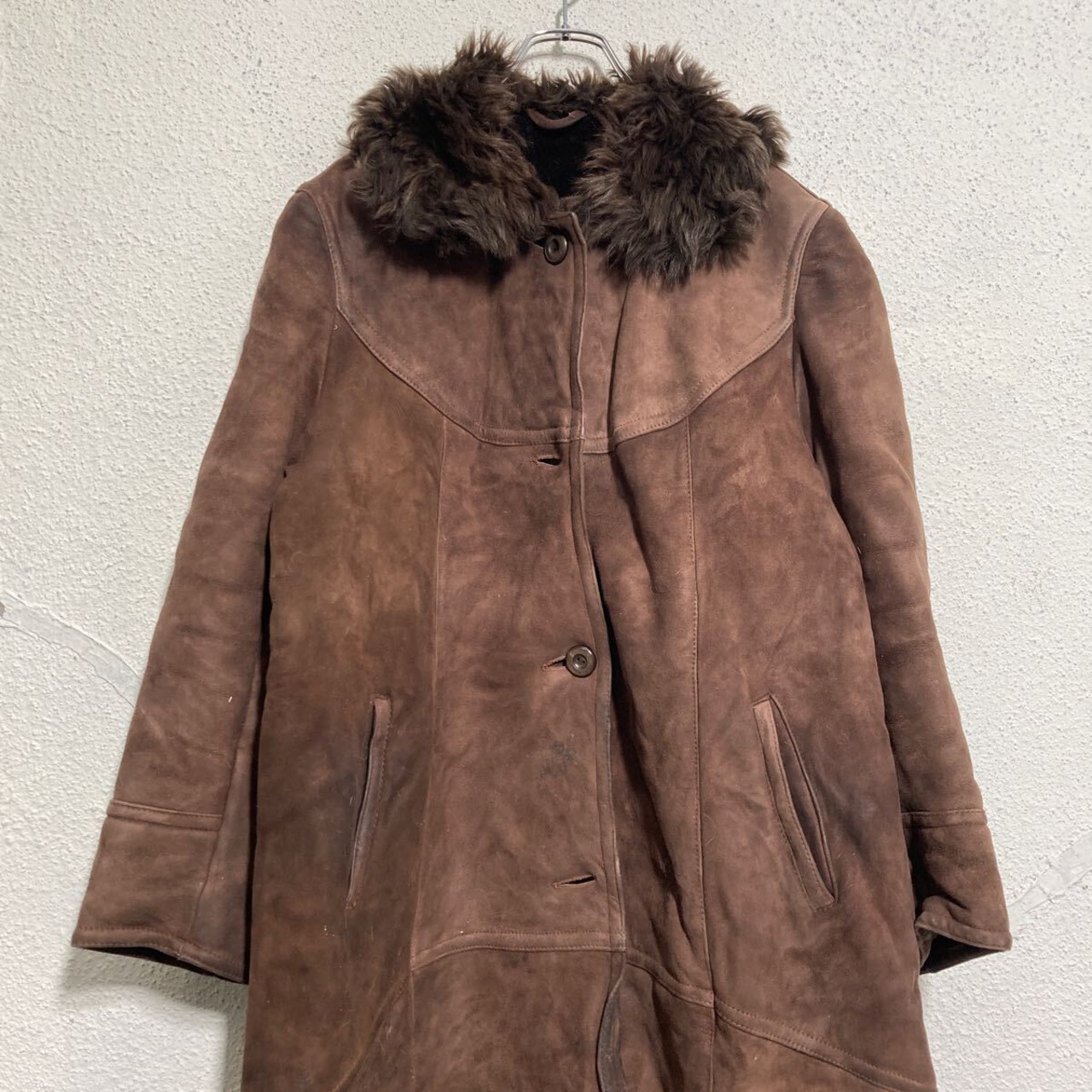 ムートンコート レディース L~ ブラウン 防寒 ロングコート ファー 古着卸 アメリカ仕入 a612-5429
