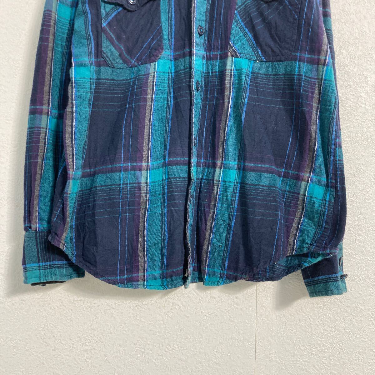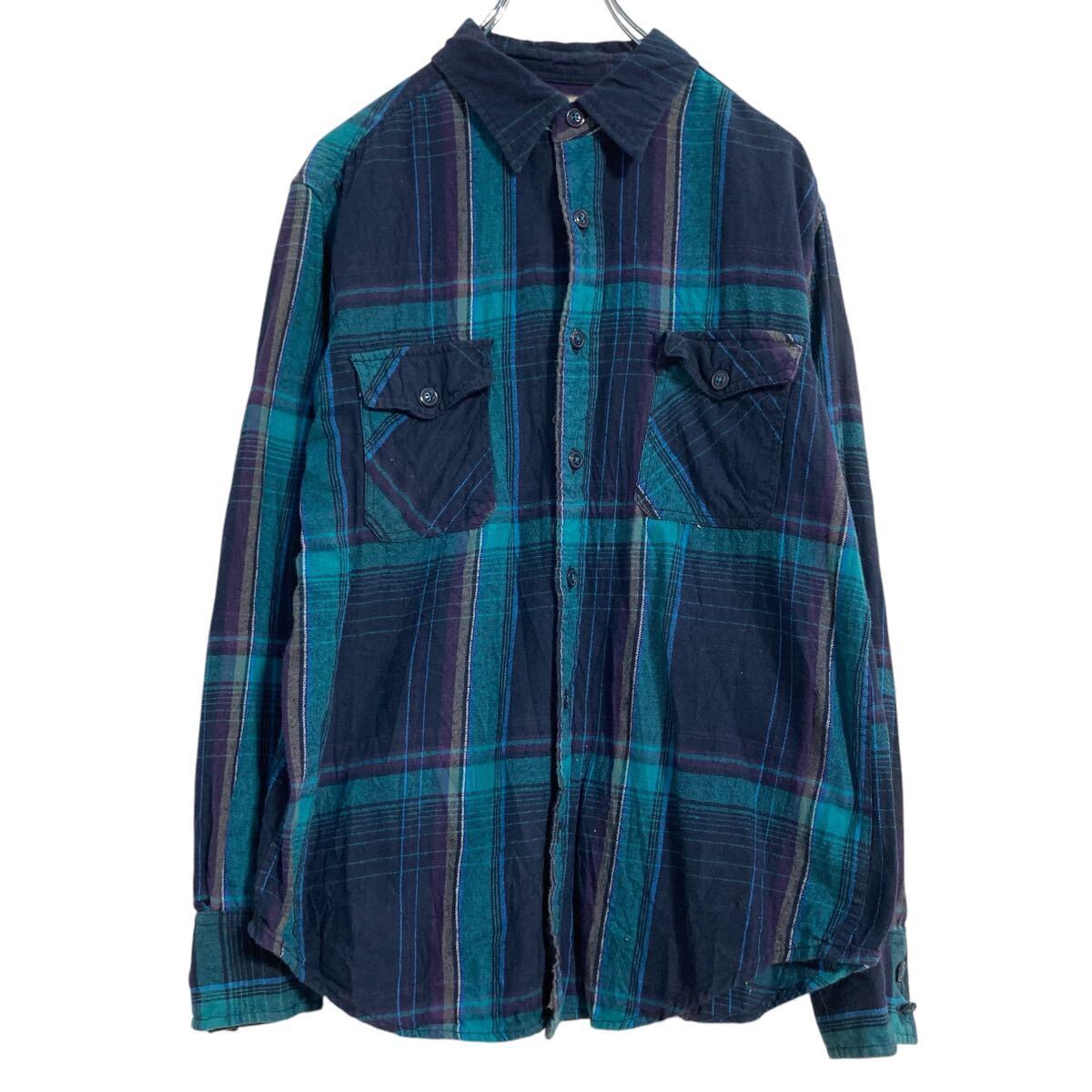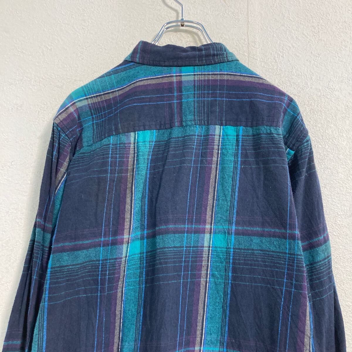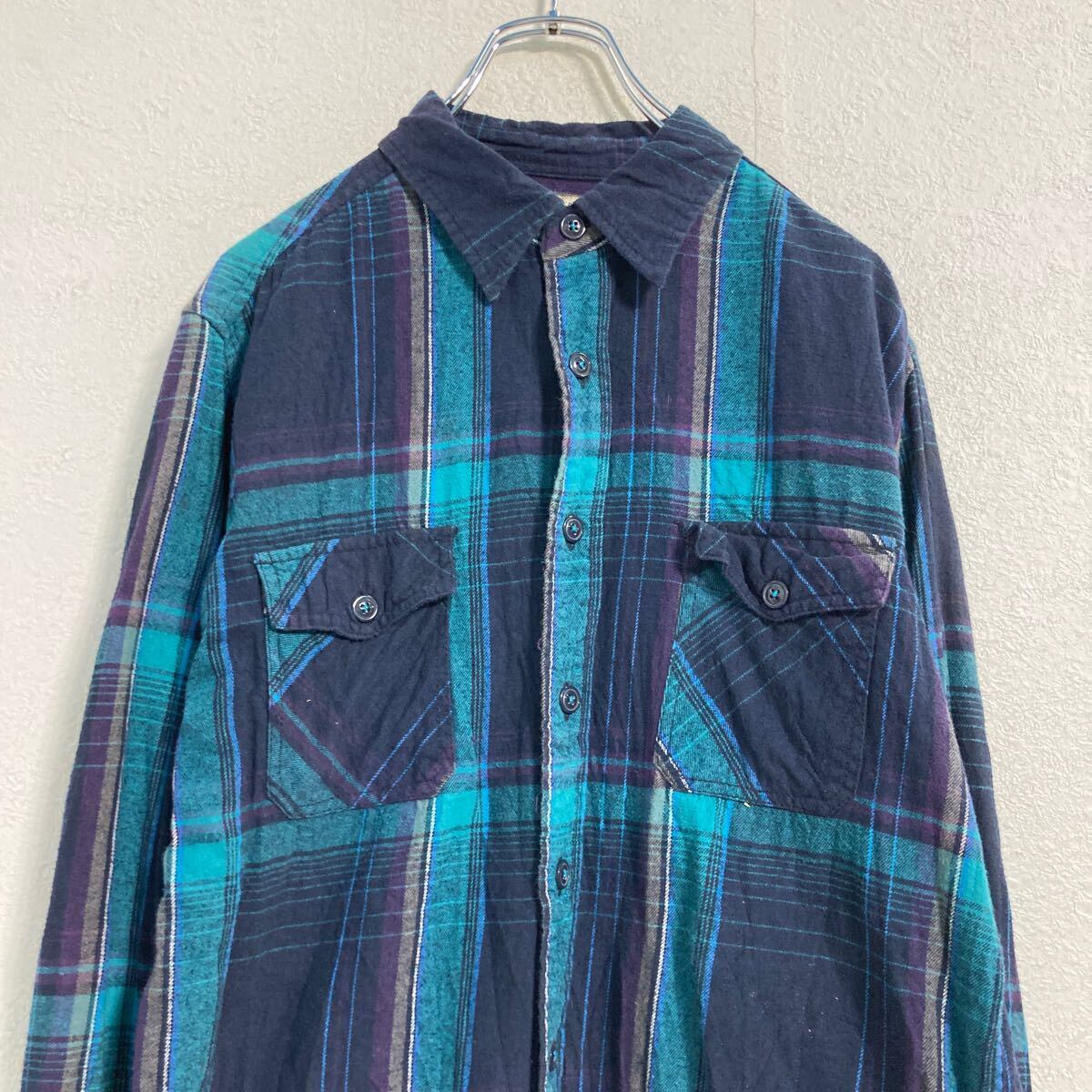 ARIZONA 長袖 チェック ネルシャツ M ネイビー グリーン パープル アリゾナ 2ポケット 古着卸 アメリカ仕入 a612-5524