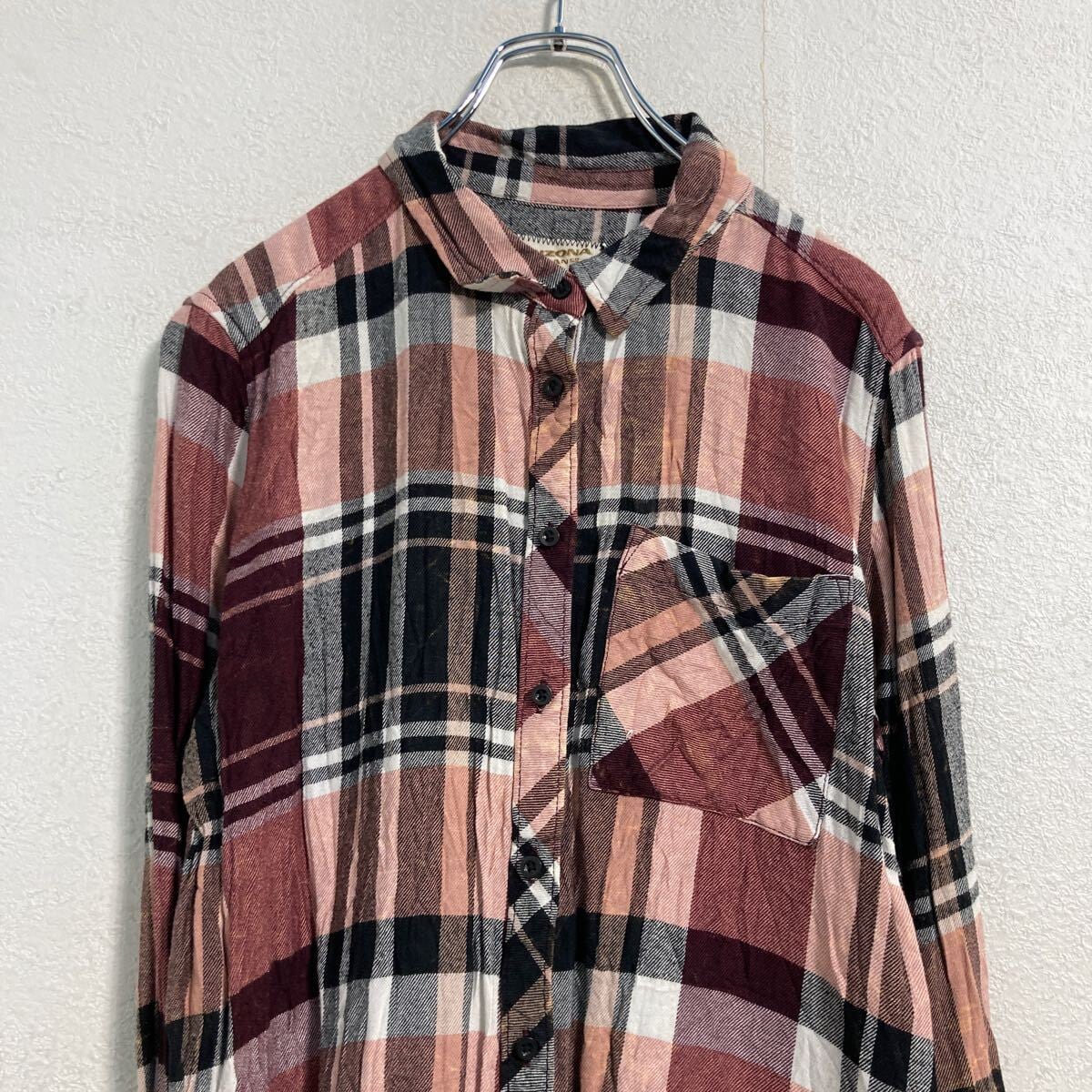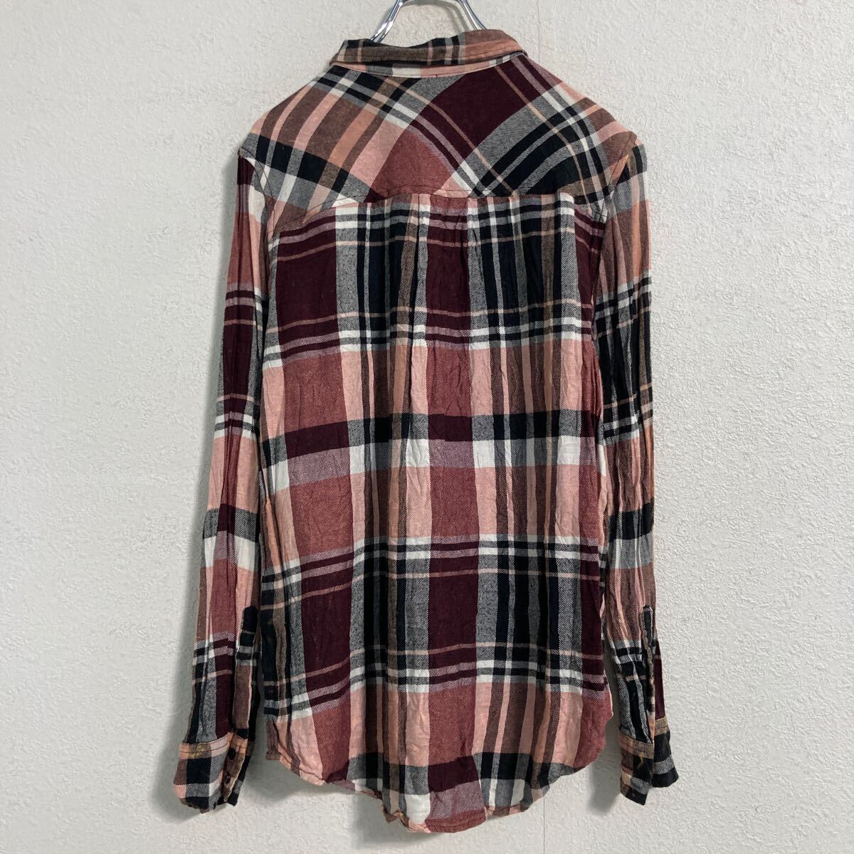 ARIZONA 長袖 チェック ネルシャツ レディース L ボルドー ホワイト ピンク アリゾナ 古着卸 アメリカ仕入 a612-5525