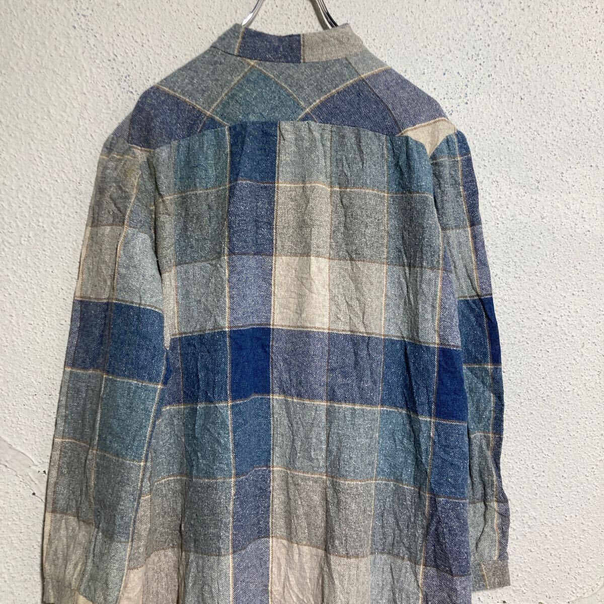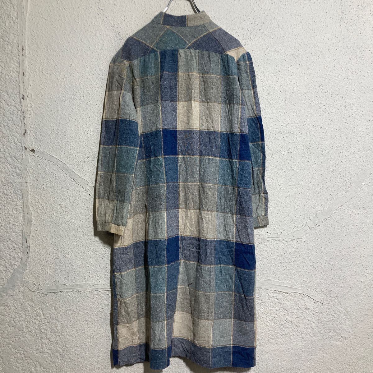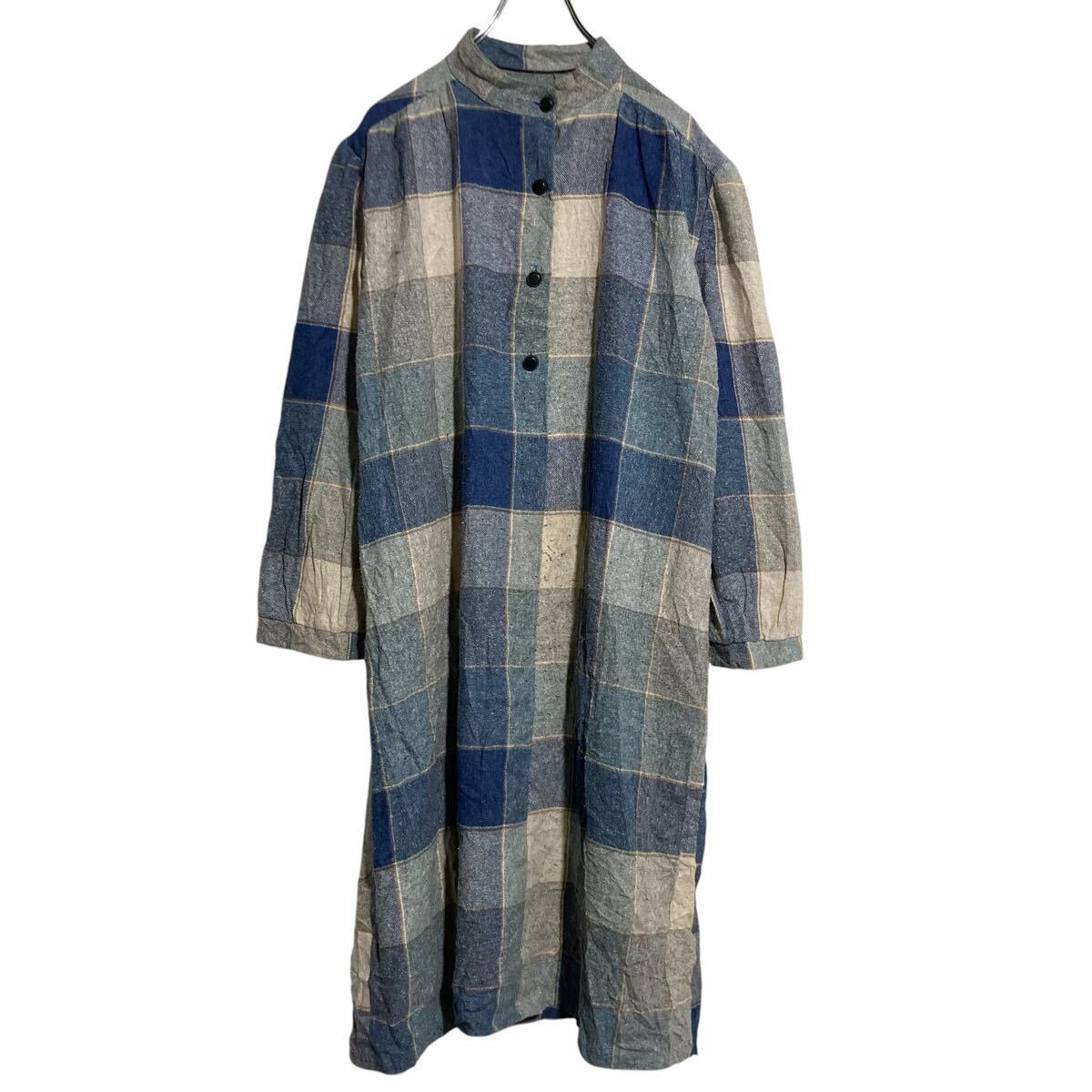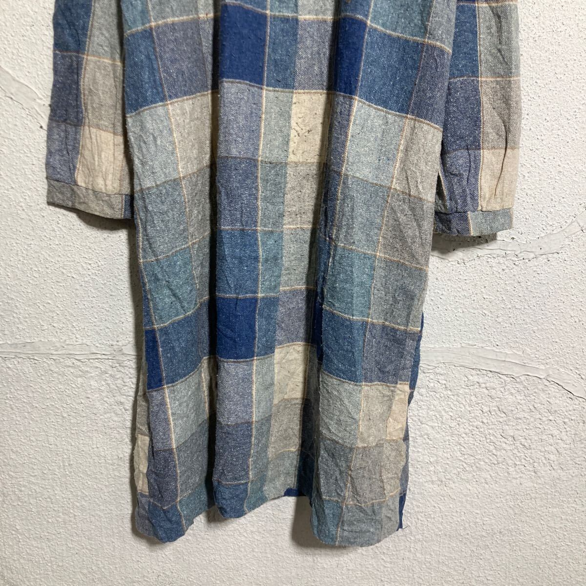 チェック柄 バンドカラー ワンピース レディース XL〜 ブルー ビッグサイズ 古着卸 アメリカ仕入 a612-5591