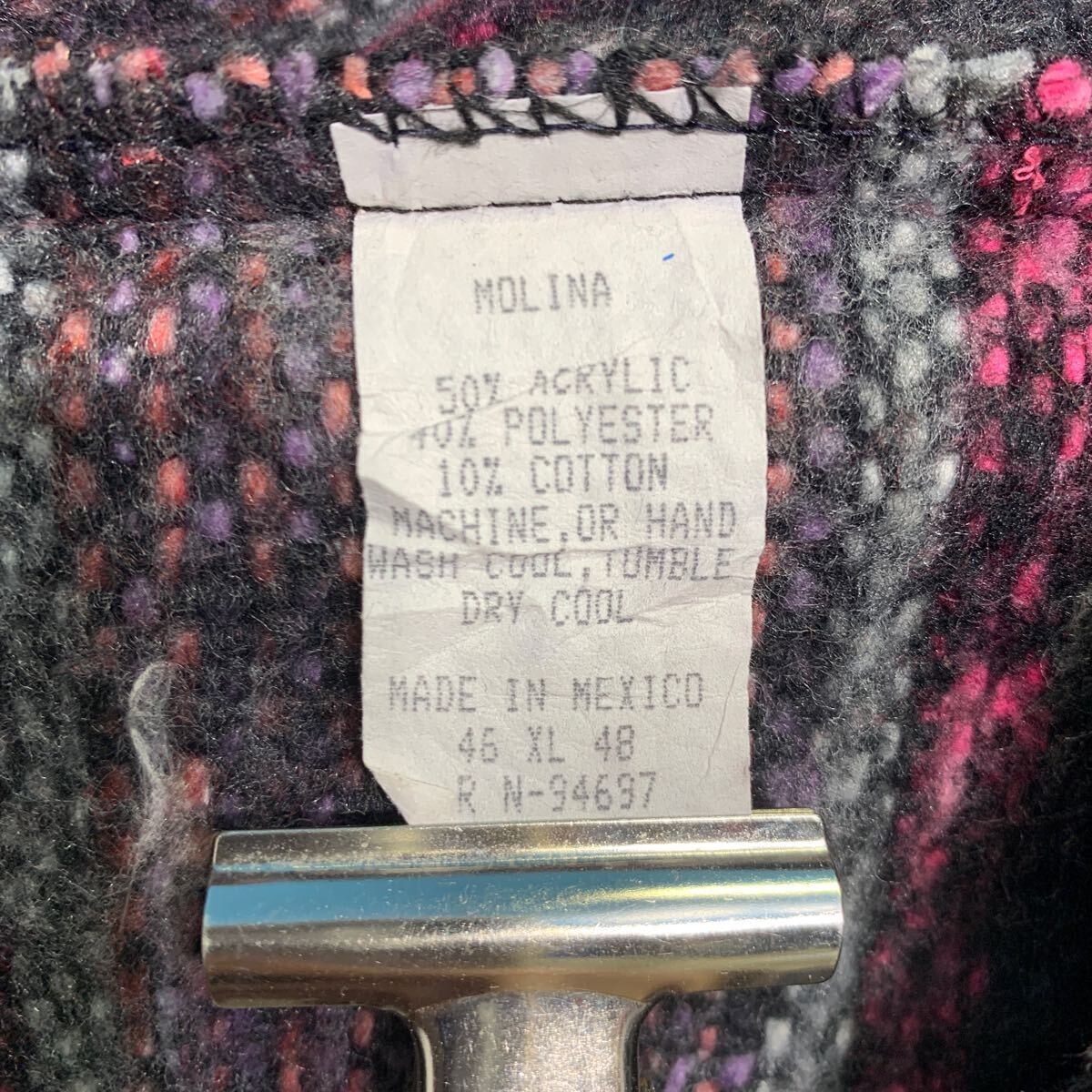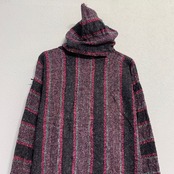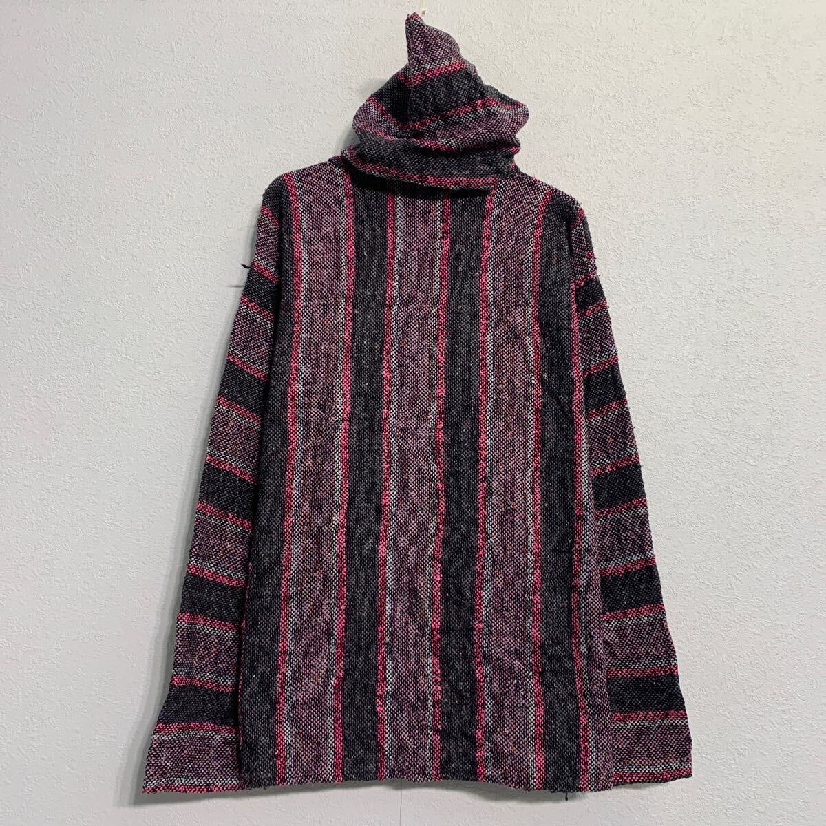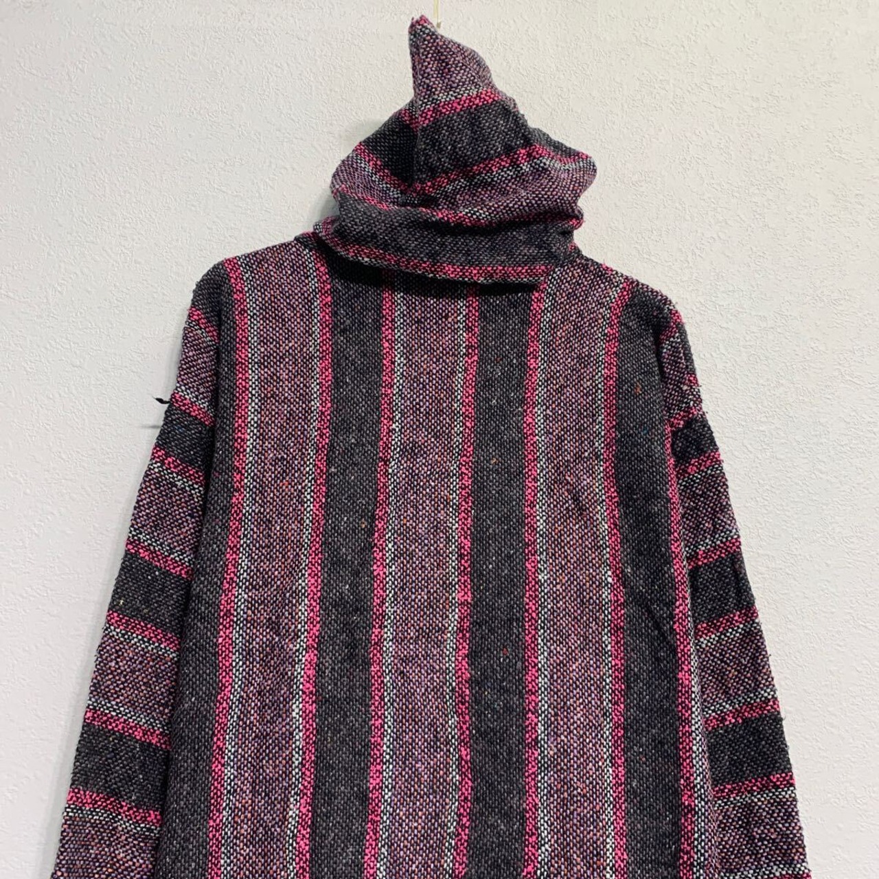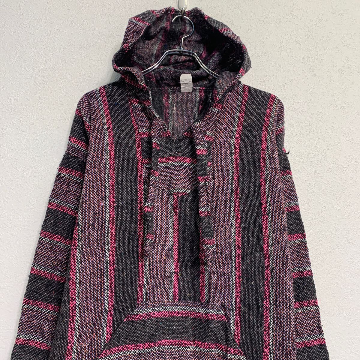 メキシカンパーカー L 程 ブラック ピンク ホワイト プルオーバー Vネック メキシコ製 ヒッピー 民族 古着卸 アメリカ仕入 a612-5610