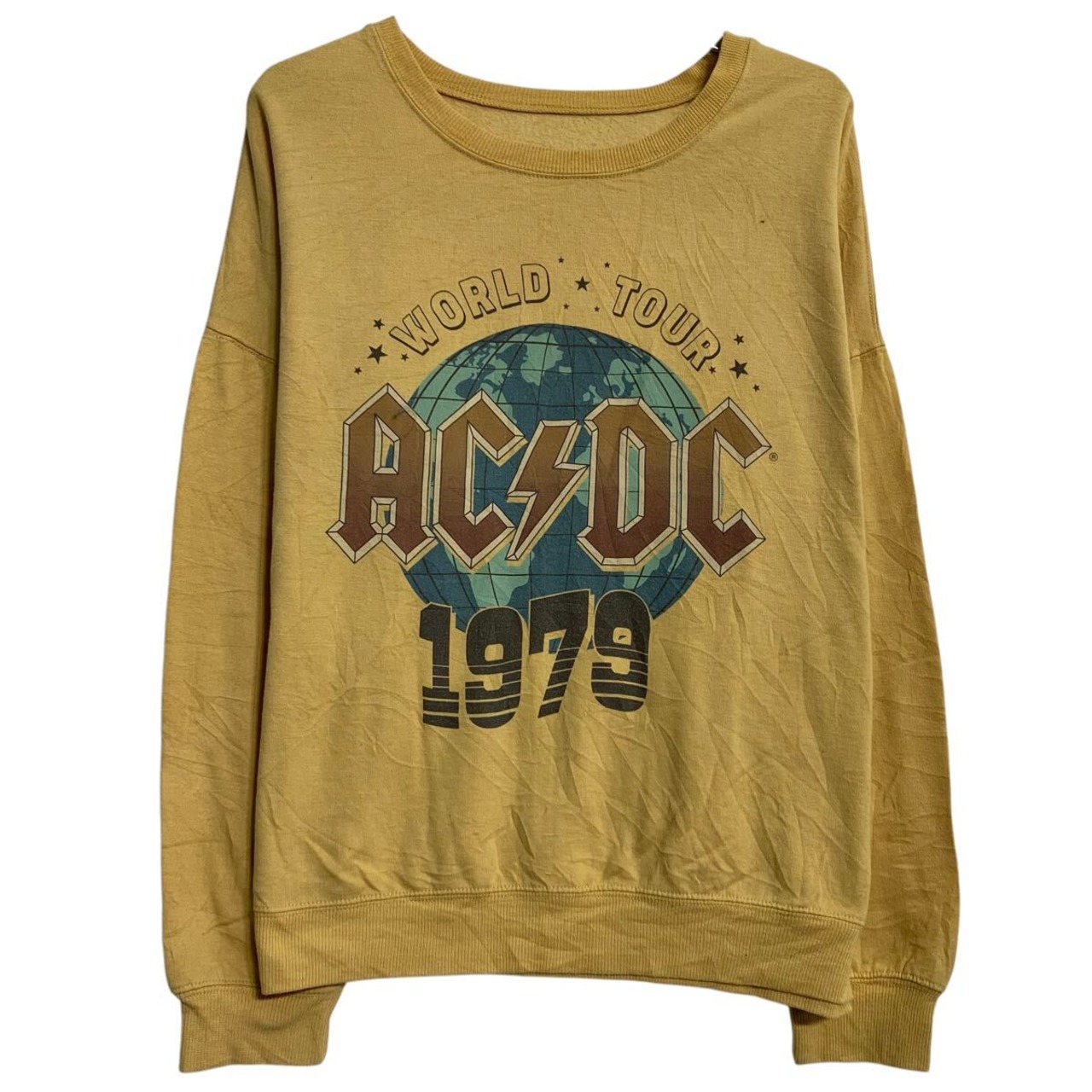 AC/DC ロゴスウェット トレーナー M 程 イエロー エーシーディーシー プルオーバー バンド 薄手 古着卸 アメリカ仕入 a612-5692