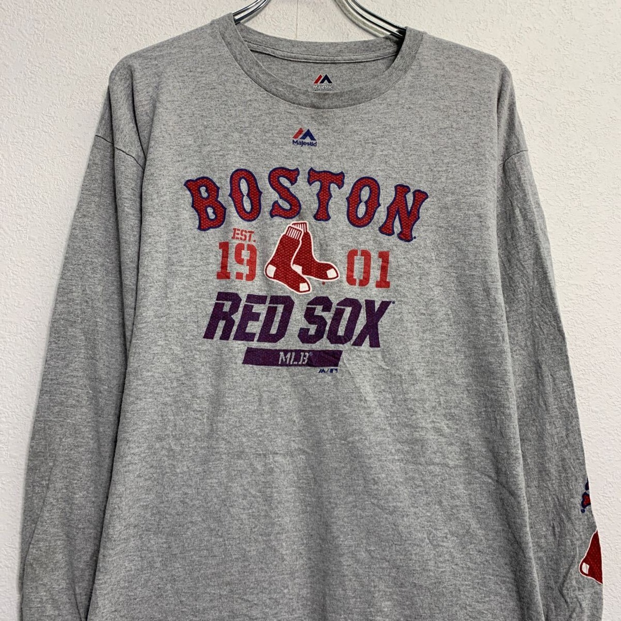 majestic ロンT ロングTシャツ XL グレー マジェステック プルオーバー ビッグサイズ レッドソックス 古着卸 アメリカ仕入 a612-5693