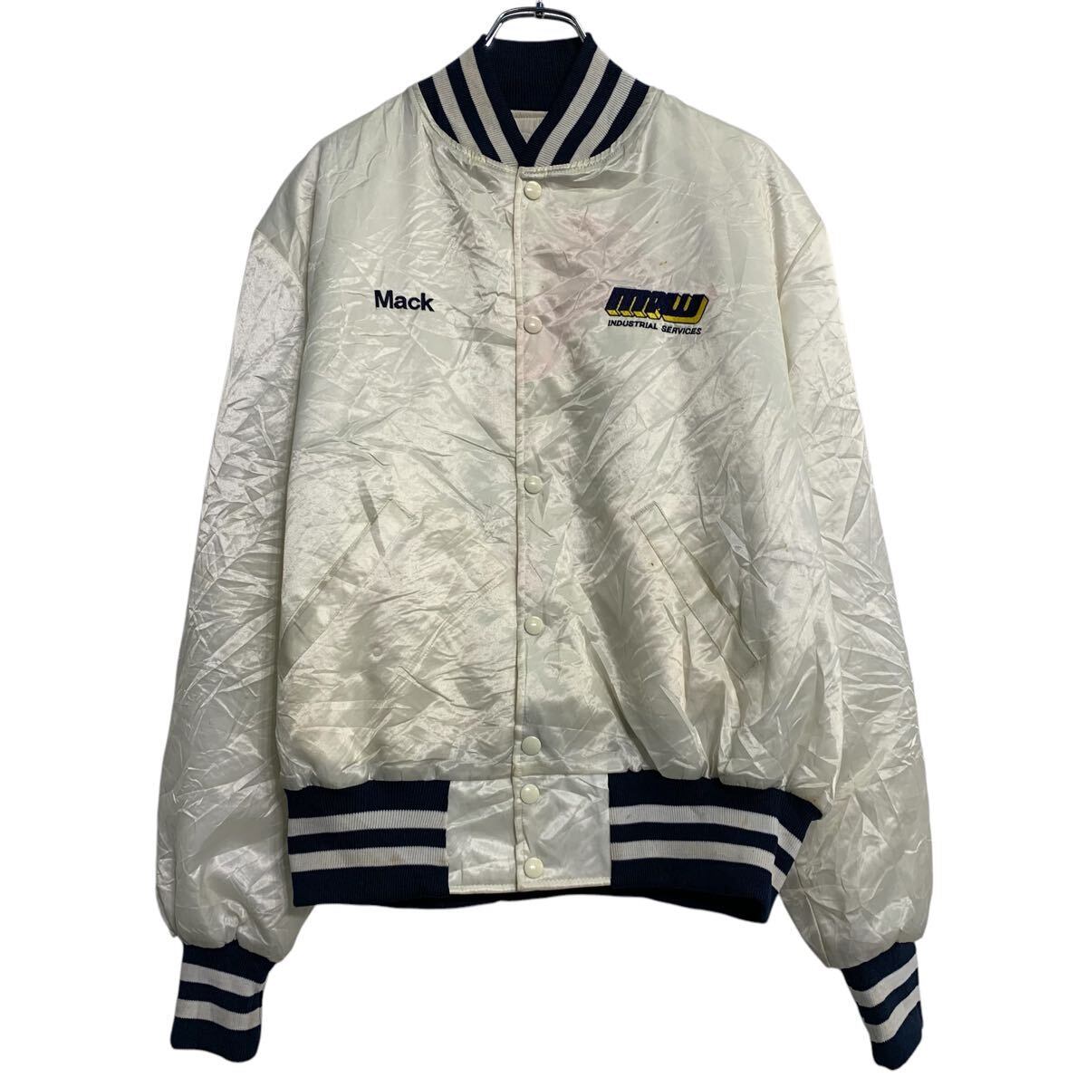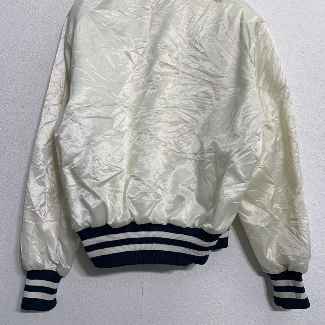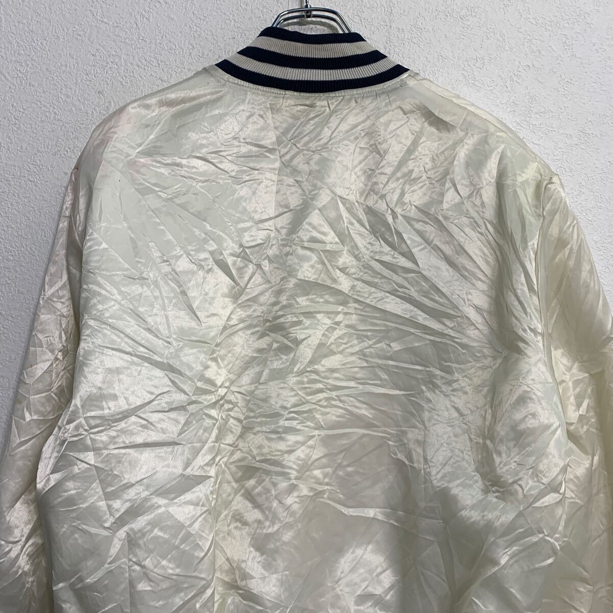 スタジアムジャケット L ホワイト ネイビー スナップボタン ワンポイント 刺繍 スポーティー アウター 古着卸 アメリカ仕入 a612-5704