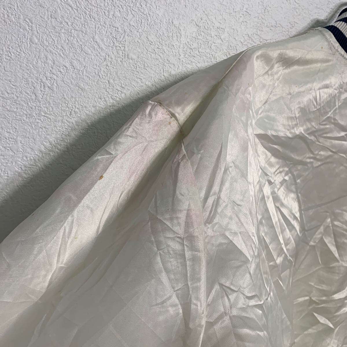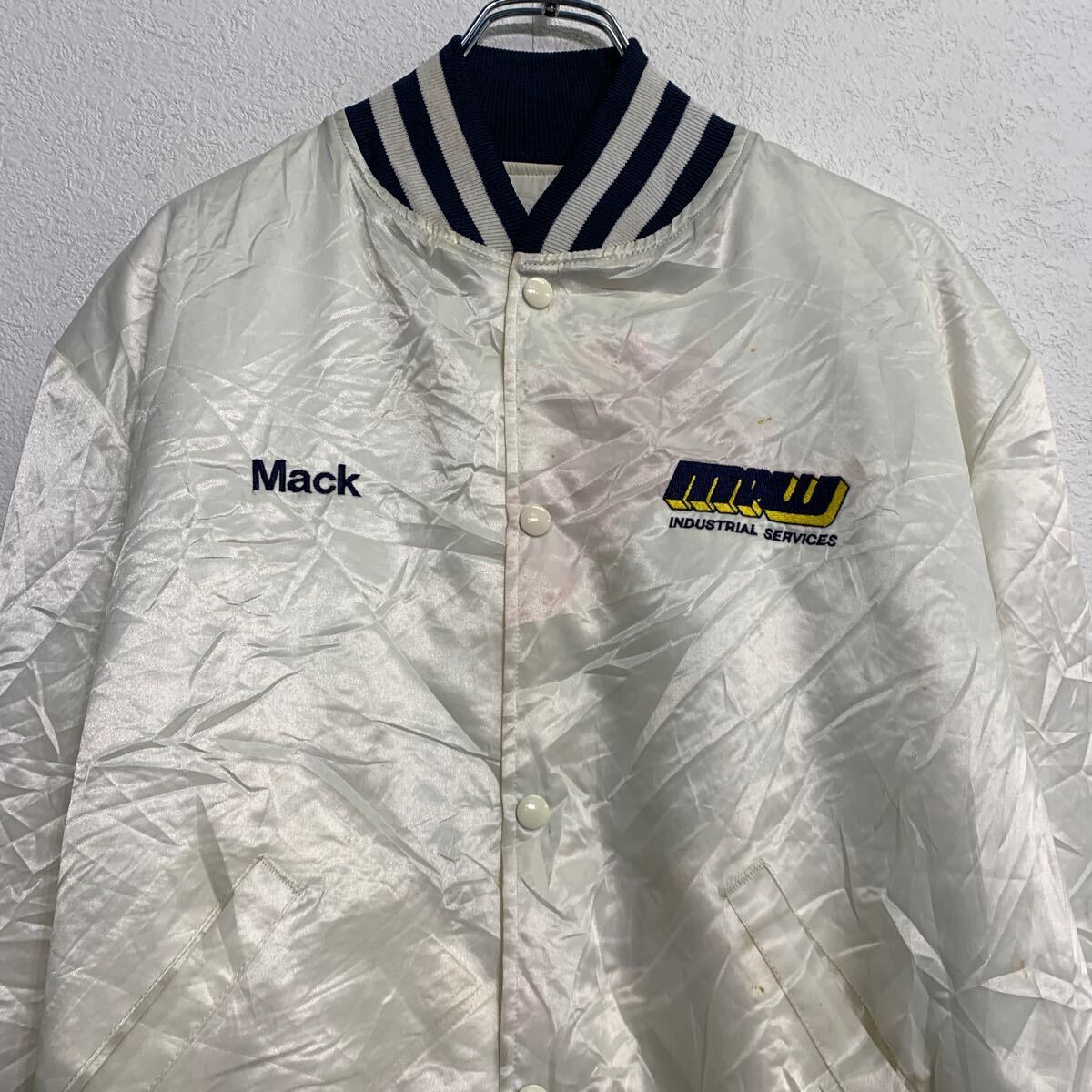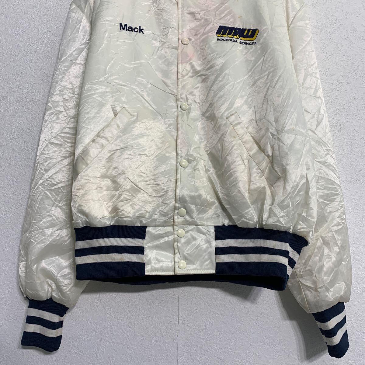 スタジアムジャケット L ホワイト ネイビー スナップボタン ワンポイント 刺繍 スポーティー アウター 古着卸 アメリカ仕入 a612-5704