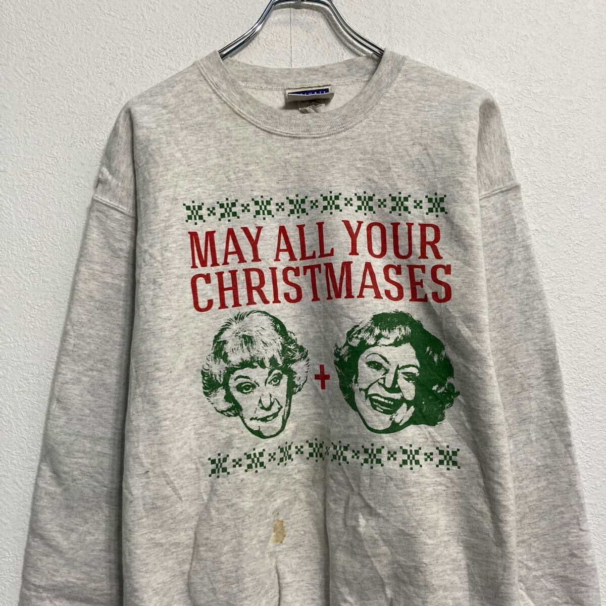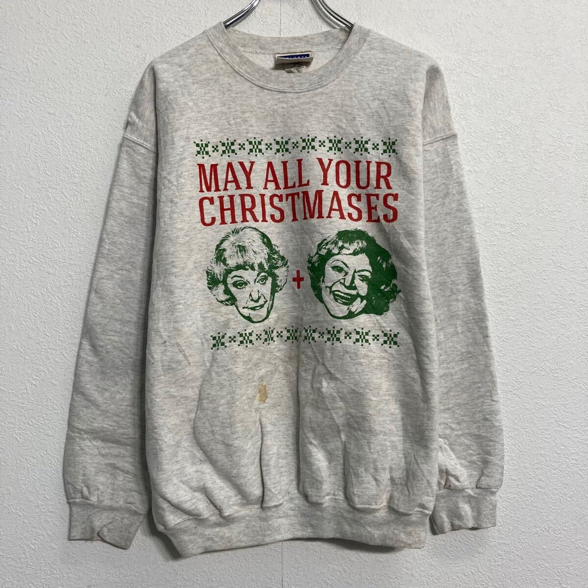 Hanes プリントスウェット トレーナー ヘインズ M ホワイト クリスマス 90s 古着卸 アメリカ仕入 a612-5765