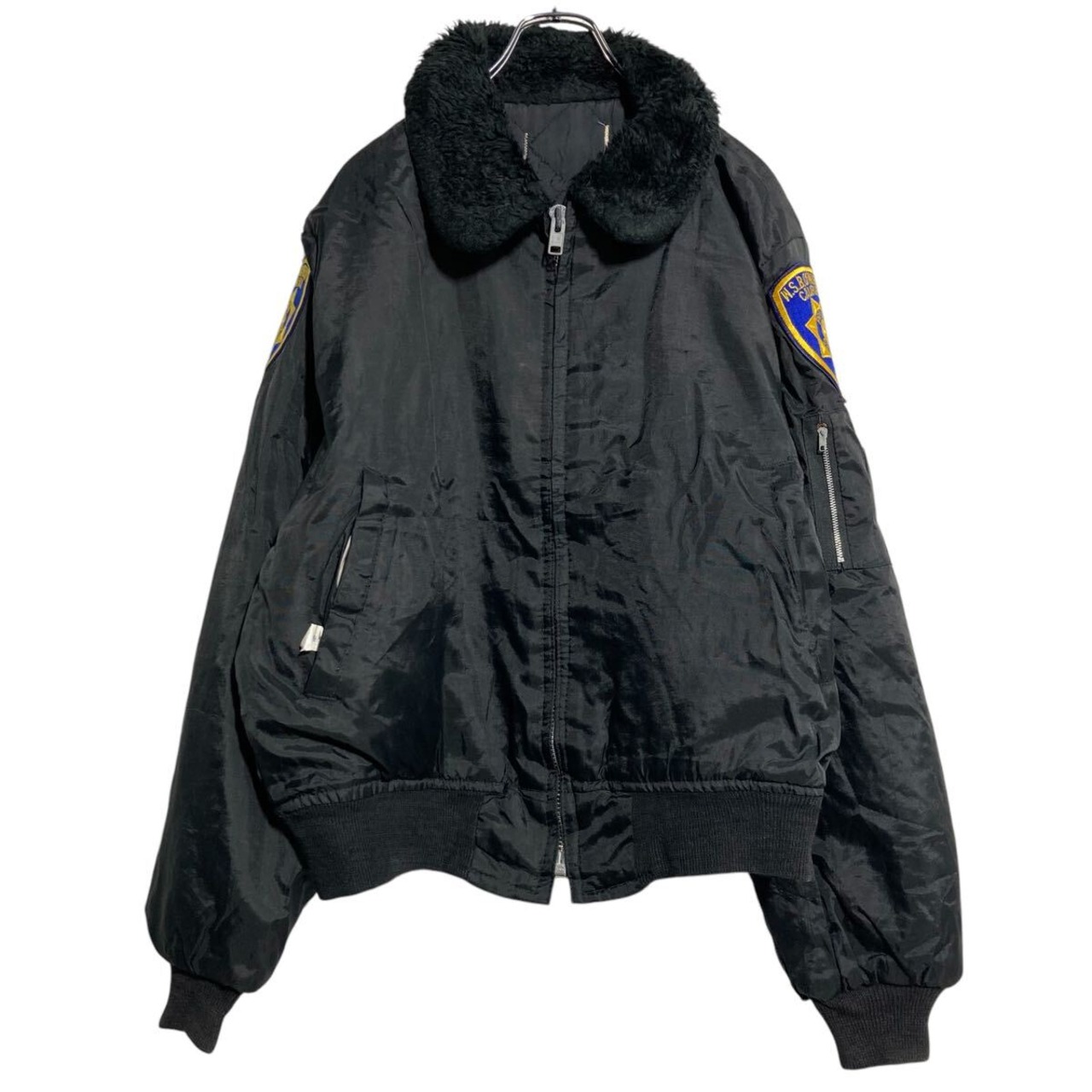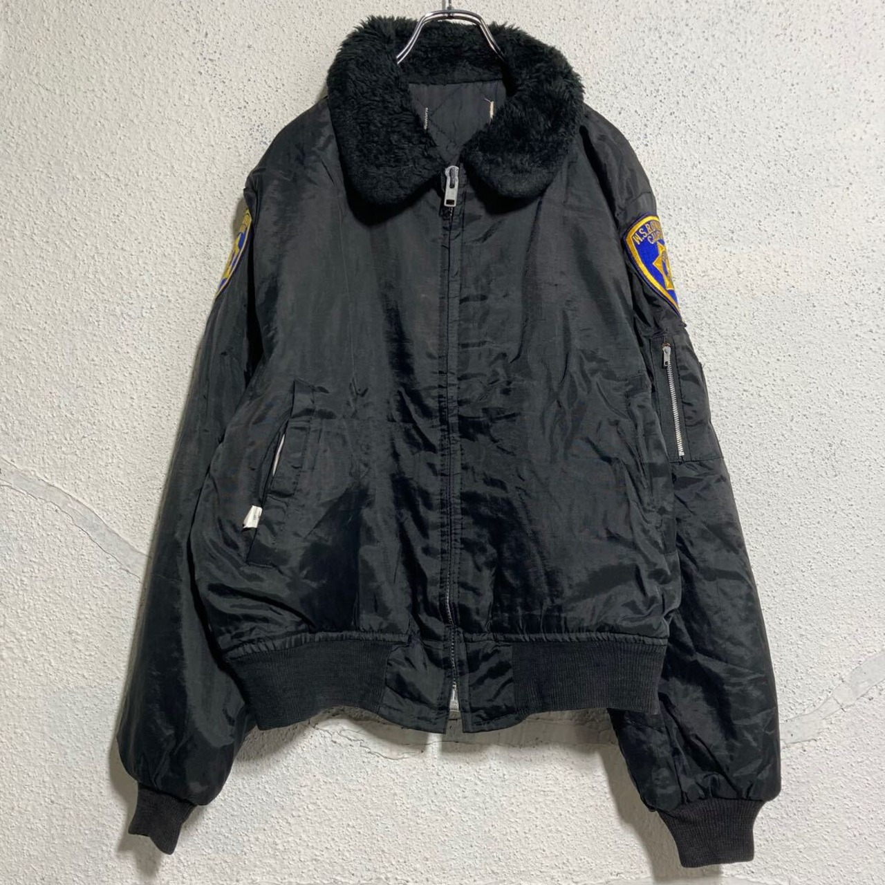 セキュリティージャケット L ブラック ブルゾン 防寒 カルフォルニア 襟ボア 古着卸 アメリカ仕入 a612-5809